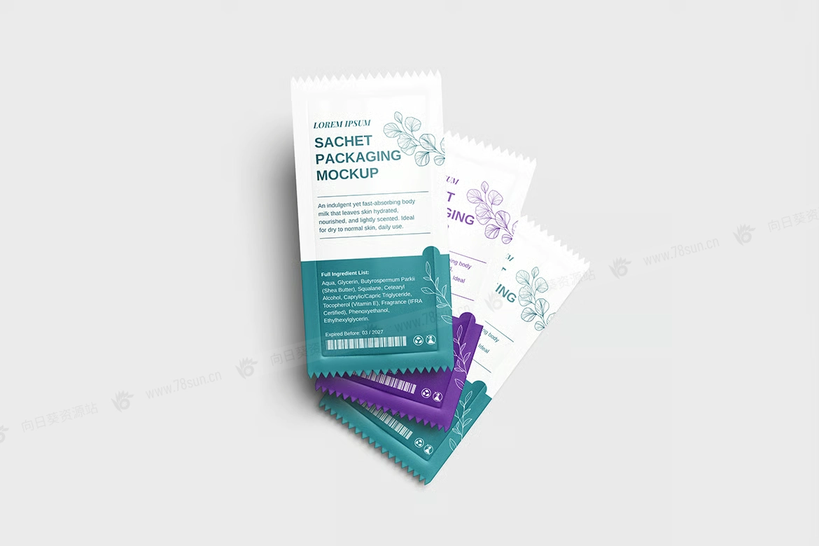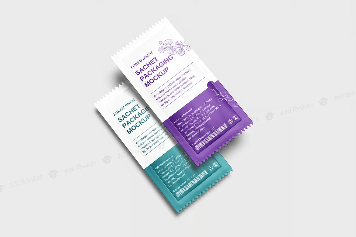 粉末食品包装小袋品牌VI效果图展示智能贴图psd设计样机。您可以使用智能对象功能轻松快速地替换设计。以 PSD Photoshop 格式提供,具有智能对象功能,可帮助您在几秒钟内将当前设计替换为您自己的设计。