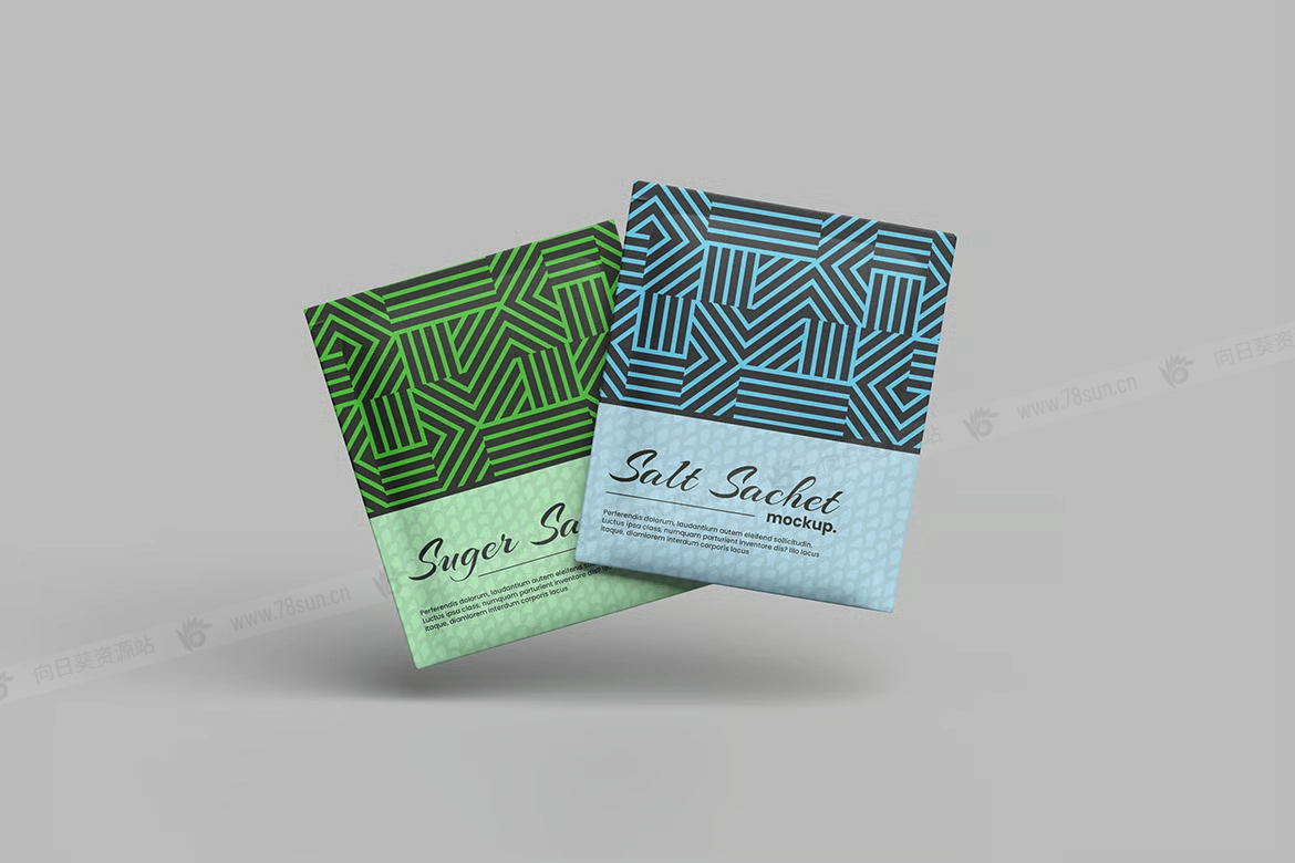 粉末食品包装小袋品牌VI效果图展示智能贴图psd设计样机,您可以使用智能对象功能轻松快速地替换设计。以 PSD Photoshop 格式提供,具有智能对象功能,可帮助您在几秒钟内将当前设计替换为您自己的设计。