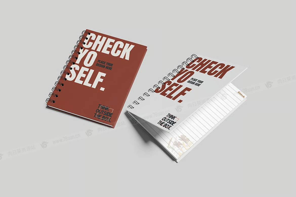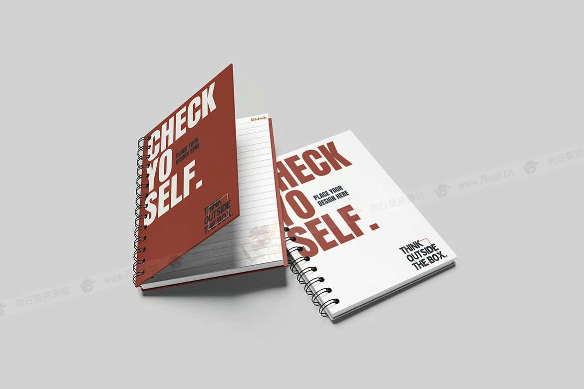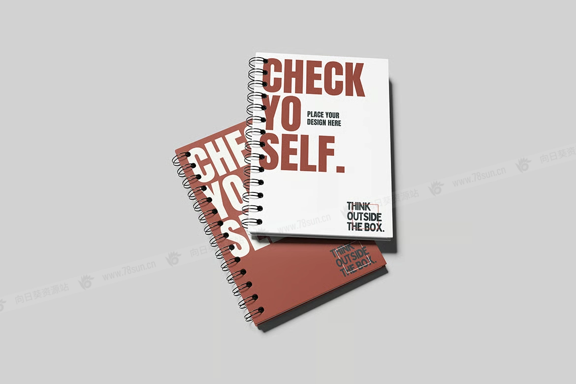 A5线圈装订螺旋日记笔记本品牌VI效果图展示智能贴图psd设计样机。该模型包括 4 个带有分层良好 PSD 文件,并且该模型还使用智能对象功能,这意味着您可以在几秒钟内轻松快速地使用自己的设计更改当前设计。