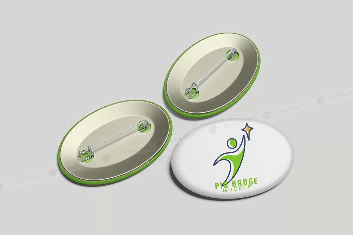 圆形Pin别针徽章胸章品牌VI效果图展示智能贴图psd设计样机。该模型包括 4 个带有分层良好 PSD 文件的项目,并且该模型还使用智能对象功能,这意味着您可以在几秒钟内轻松快速地使用自己的设计更改当前设计。