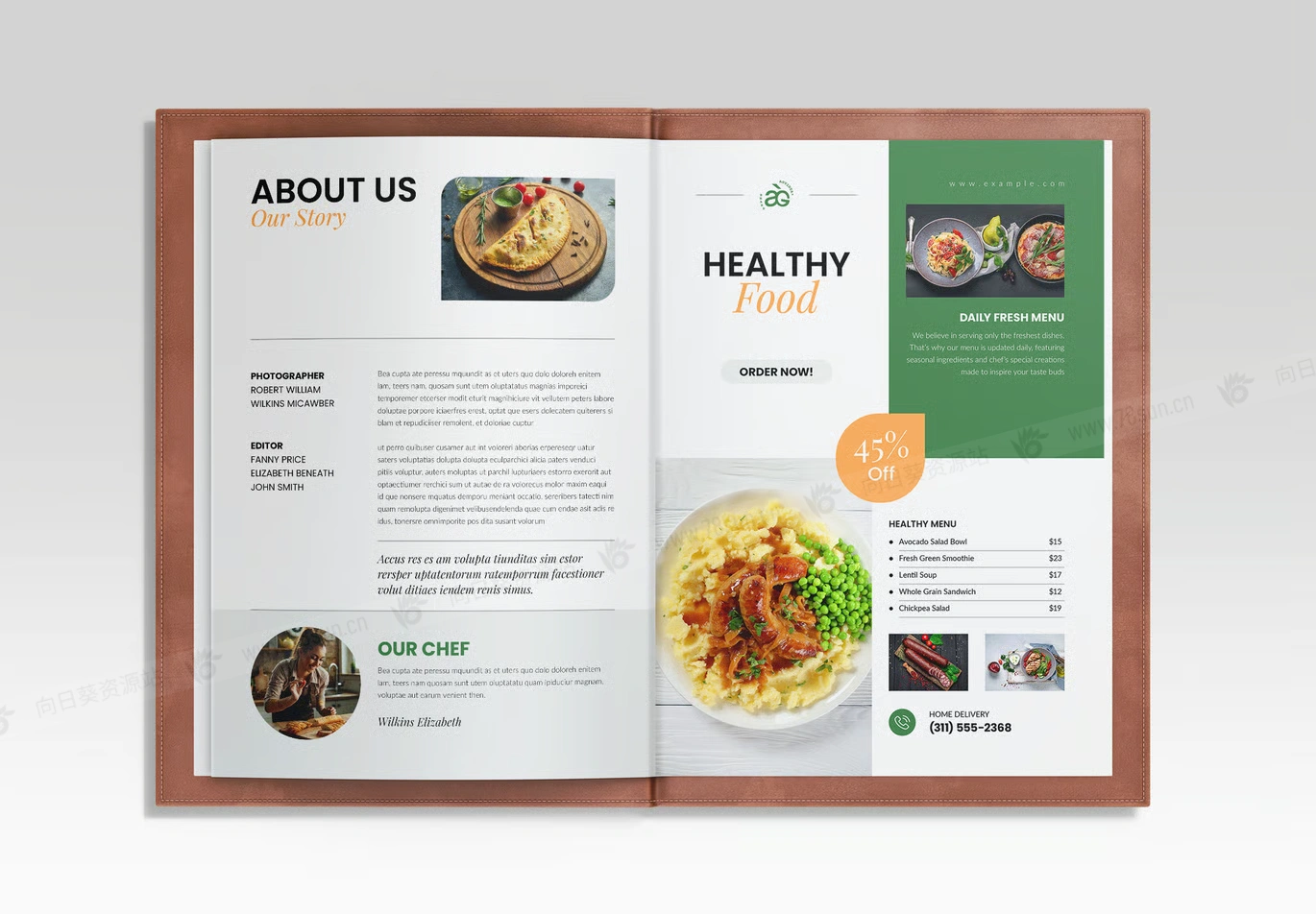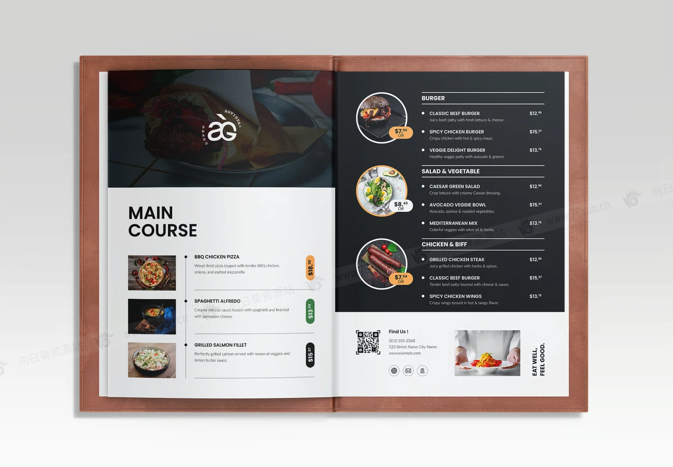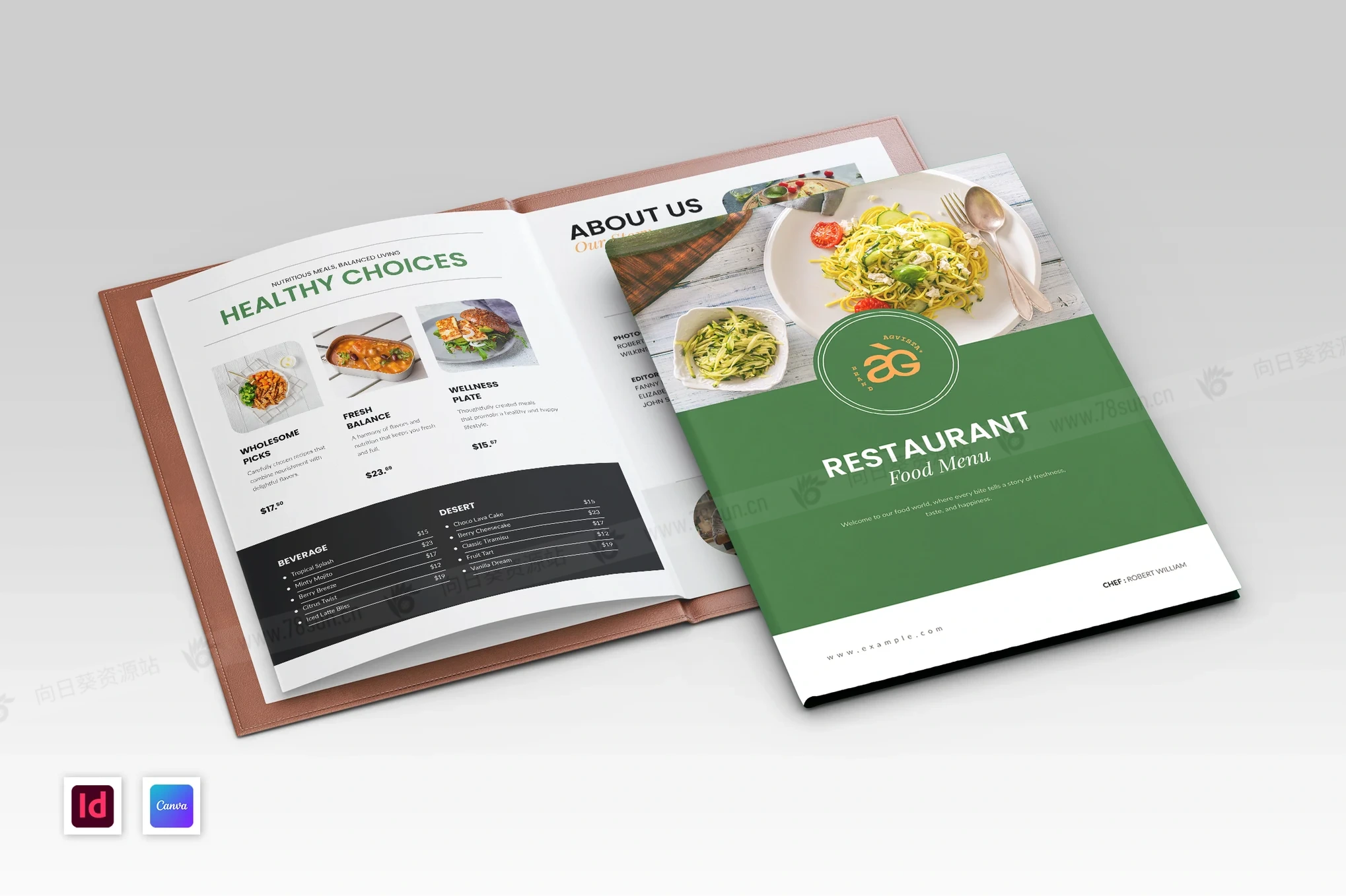食品美食餐厅菜单小册子杂志宣传册画册indd设计模板。这个多页菜单非常适合寻求干净、专业和视觉吸引力布局的餐厅、咖啡馆、小酒馆和食品企业。此菜单模板可在 Adobe InDesign 和 Canva 中完全自定义,提供组织良好的图层、免费字体和可打印的格式。