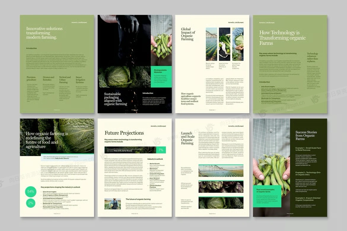 绿植绿色生态农业环境电子书数字小册子杂志宣传册画册indd设计模板,此文档模板以 Canva、InDesign IDML 和 InDesign INDD 格式提供,易于编辑