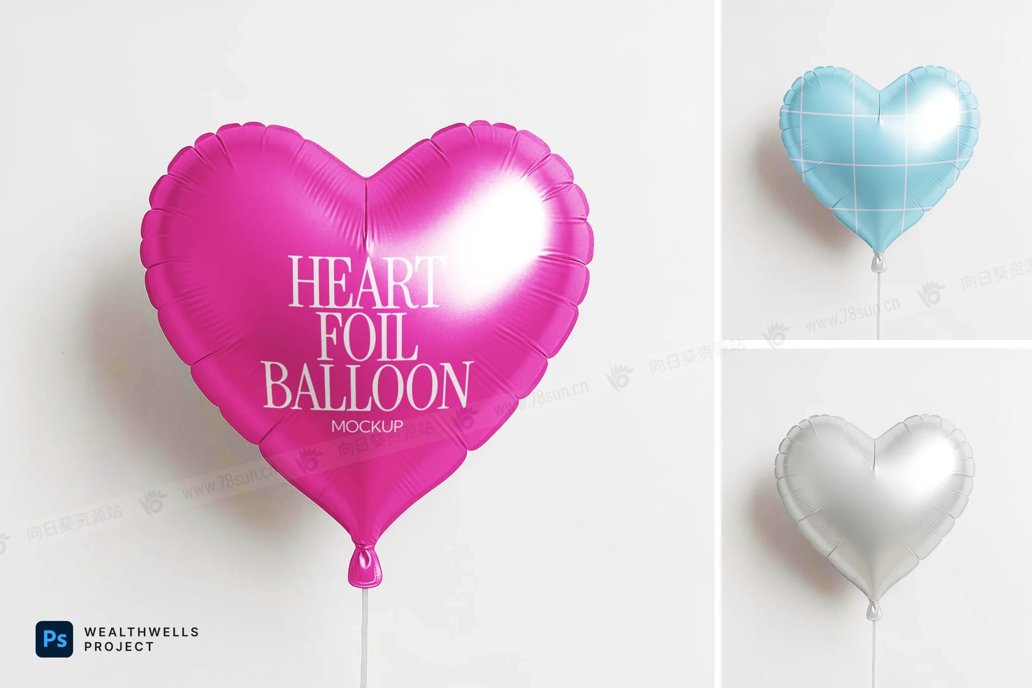 心形气球品牌VI效果图展示智能贴图psd设计样机,以逼真的外观展示您的模板设计。可以使用智能对象功能轻松快速地替换设计。以 PSD Photoshop 格式提供,具有智能对象功能,可帮助您在几秒钟内将当前设计替换为您自己的设计。