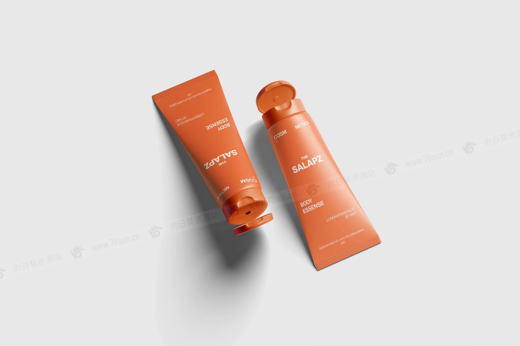 化妆品护手霜洗面奶软管品牌VI效果图展示智能贴图psd设计样机,只需通过智能对象放置图像并切换照明和阴影选项,即可轻松调整模型。根据您自己的需求自定义这些模型的大量选项使您能够创建逼真且真实的场景。