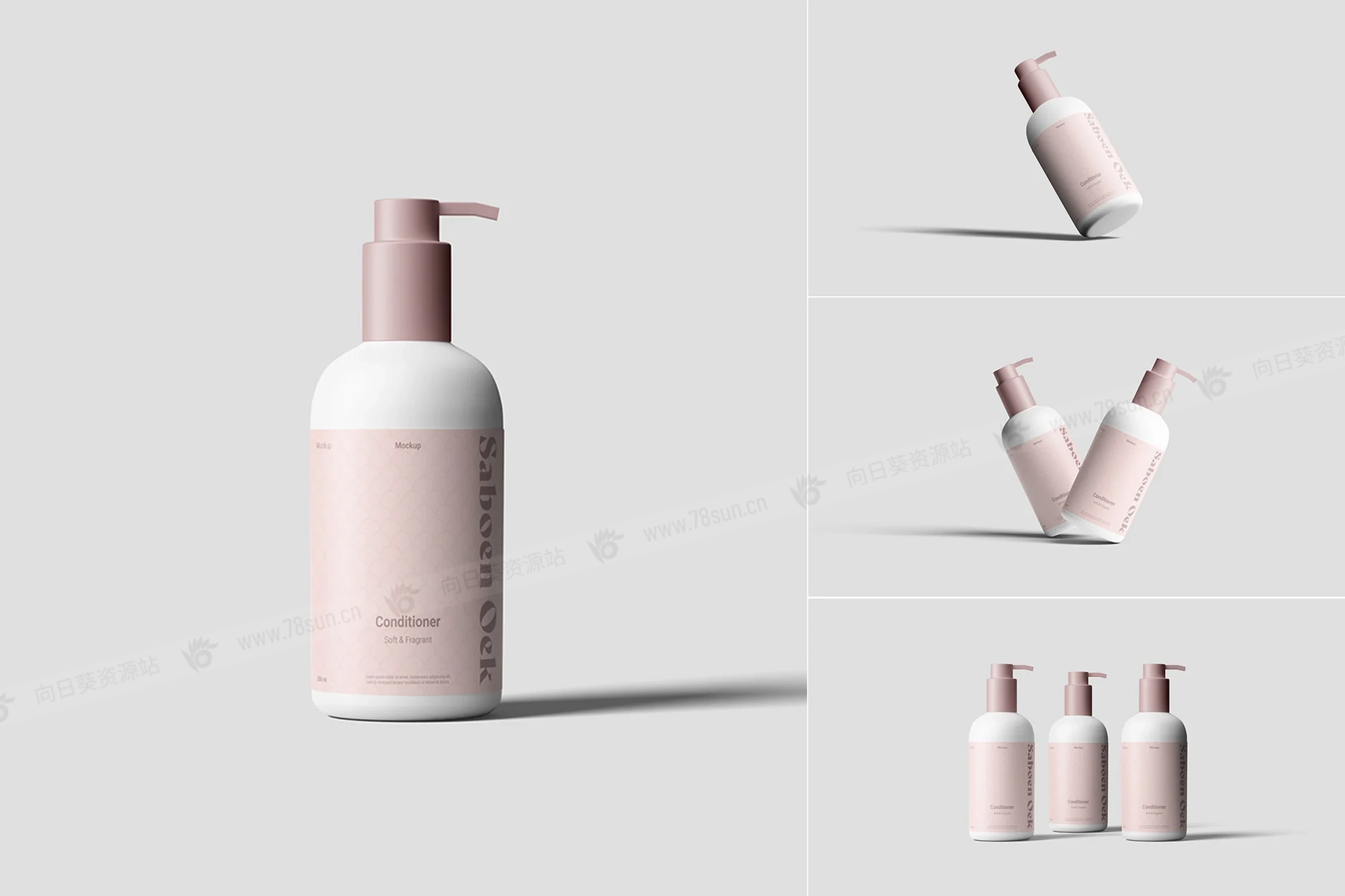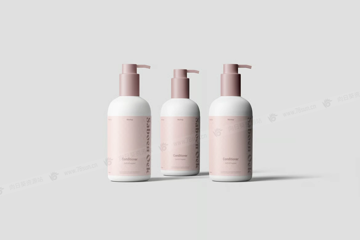 化妆品泵瓶乳液品牌VI效果图展示智能贴图psd设计样机,只需通过智能对象放置图像并切换照明和阴影选项,即可轻松调整模型。根据您自己的需求自定义这些模型的大量选项使您能够创建逼真且真实的场景。