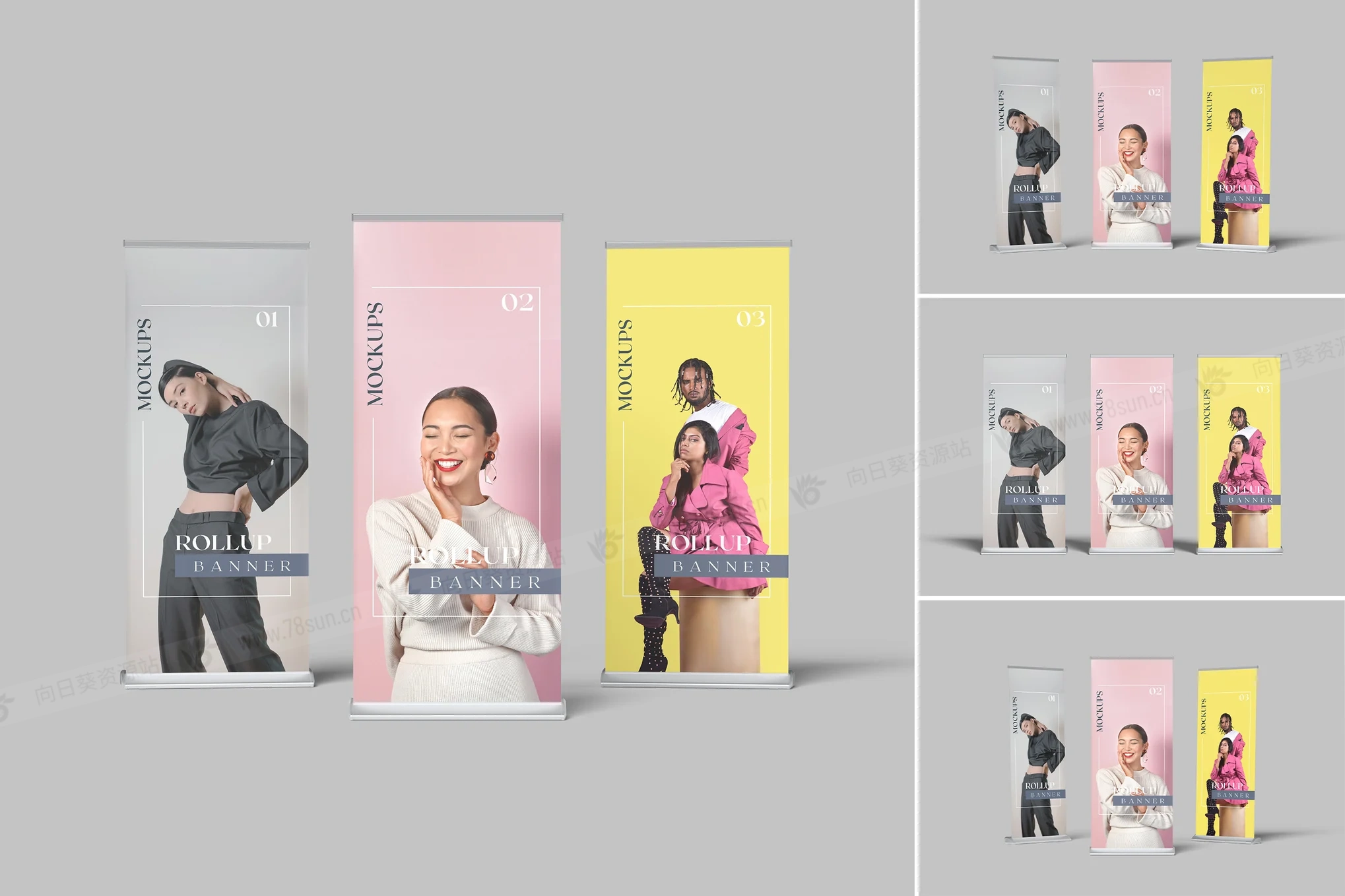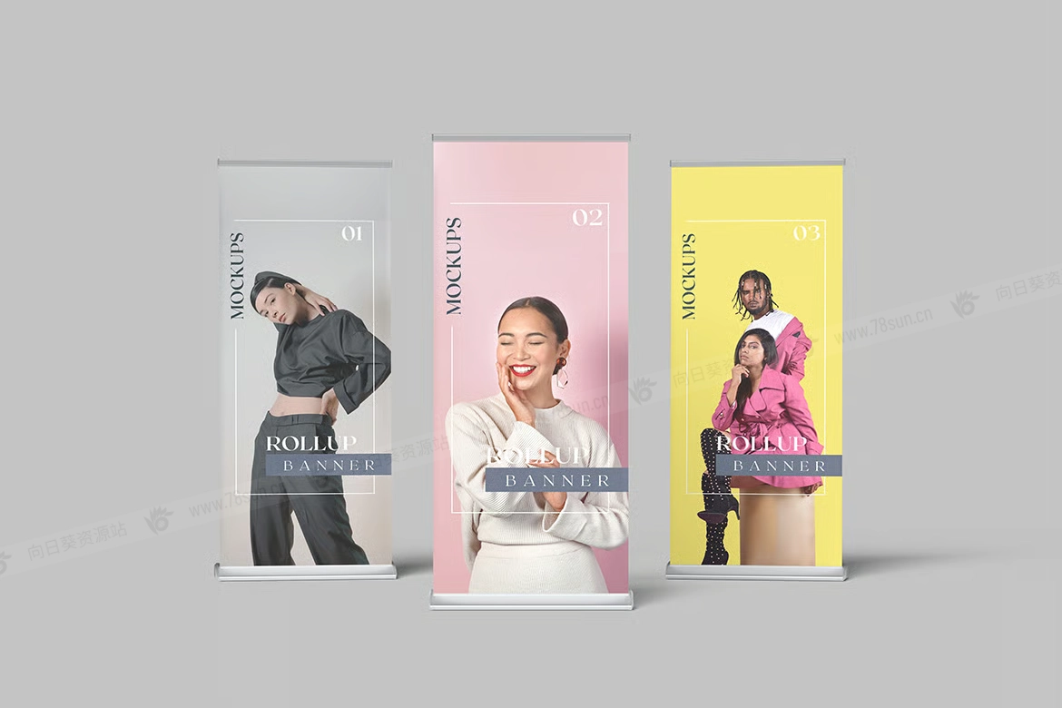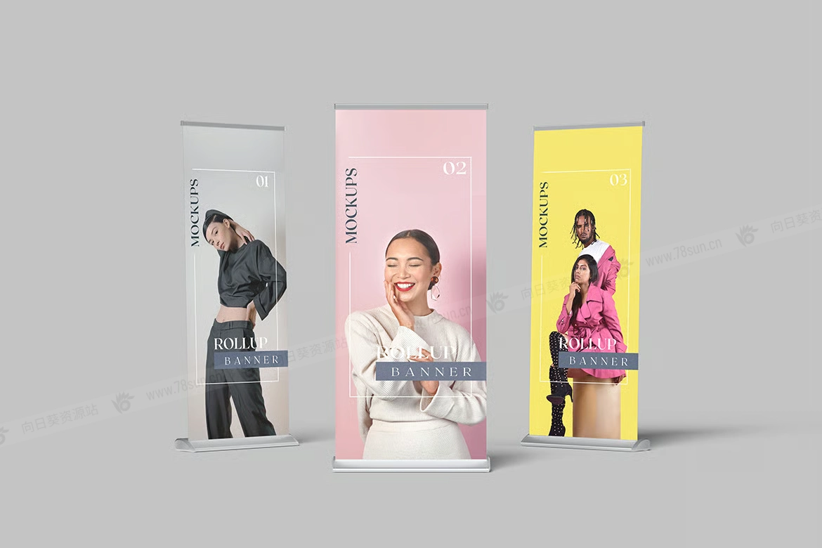 展架易拉宝品牌VI效果图展示智能贴图psd设计样机。这些 PSD 文件使用智能对象功能,因此您可以轻松快速地替换模型内容。这很简单!您只需双击智能对象,粘贴您的图稿,保存,然后就完成了。