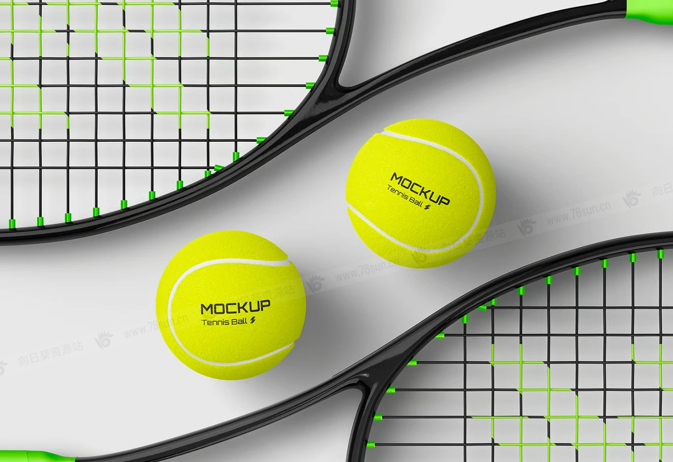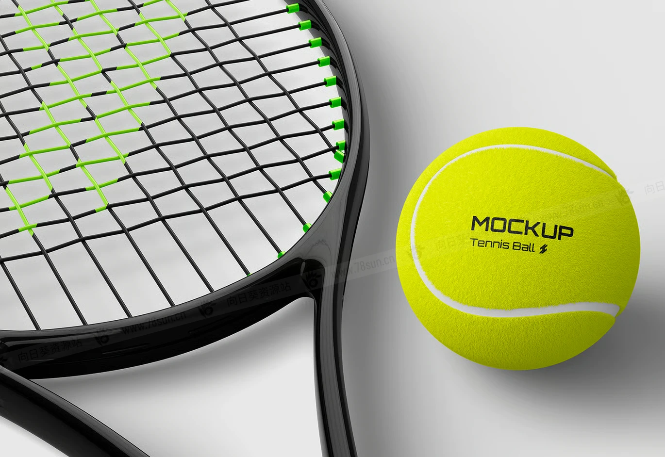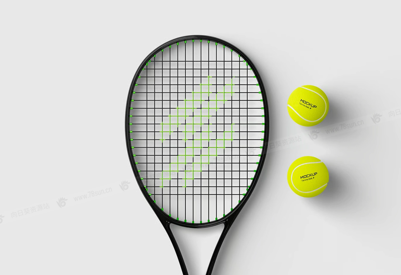 网球拍带球品牌VI效果图展示智能贴图psd设计样机。智能对象可以节省大量时间。只需单击智能对象几次,添加您自己的图形并保存结果。