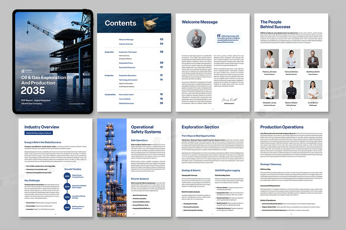 石油天然气公司简介年度报告电子书数字小册子杂志宣传册画册indd设计模板,适用于石油、天然气和化工行业的白皮书、电子书、报告它以 Canva、InDesign INDD 和 IDML 形式提供,