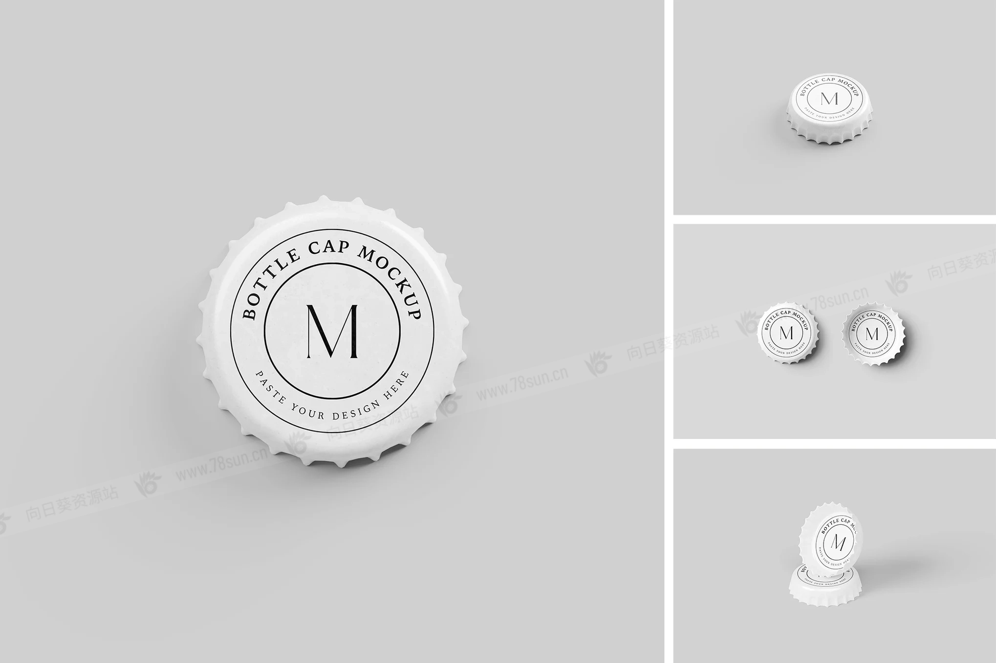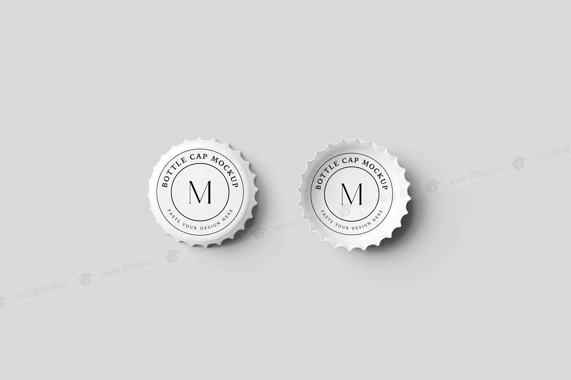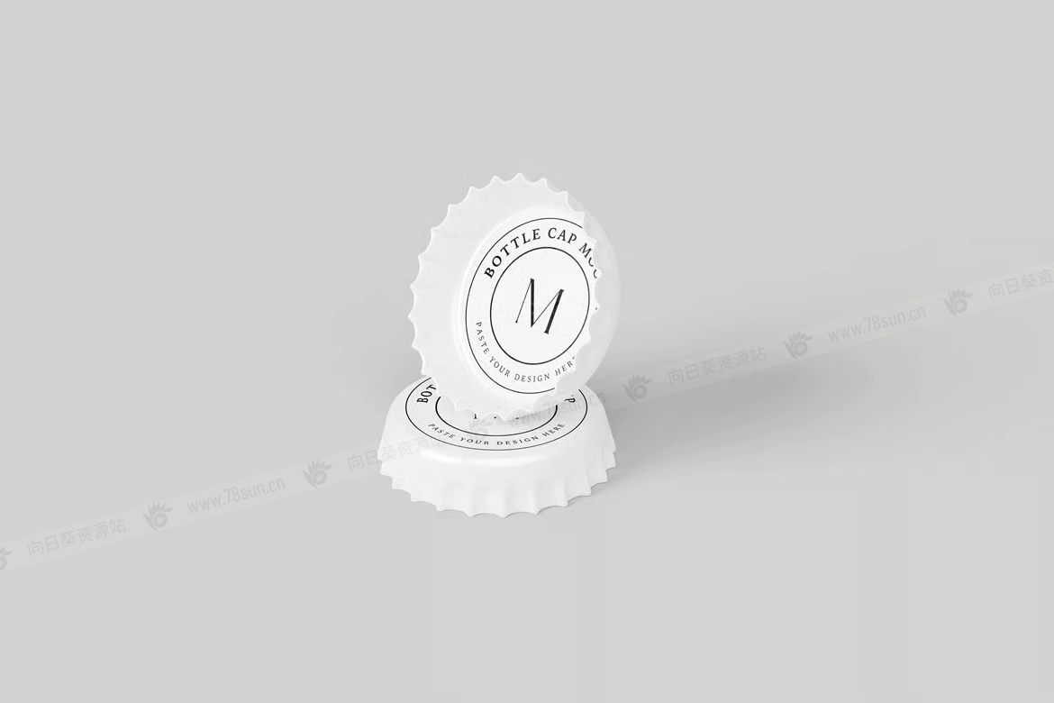 啤酒汽水饮料瓶盖品牌VI效果图展示智能贴图psd设计样机,由 04 种不同风格的瓶盖模型组成,以逼真的外观展示您的模板设计。这些模型文件使用智能对象功能,可帮助您在几秒钟内更改设计。