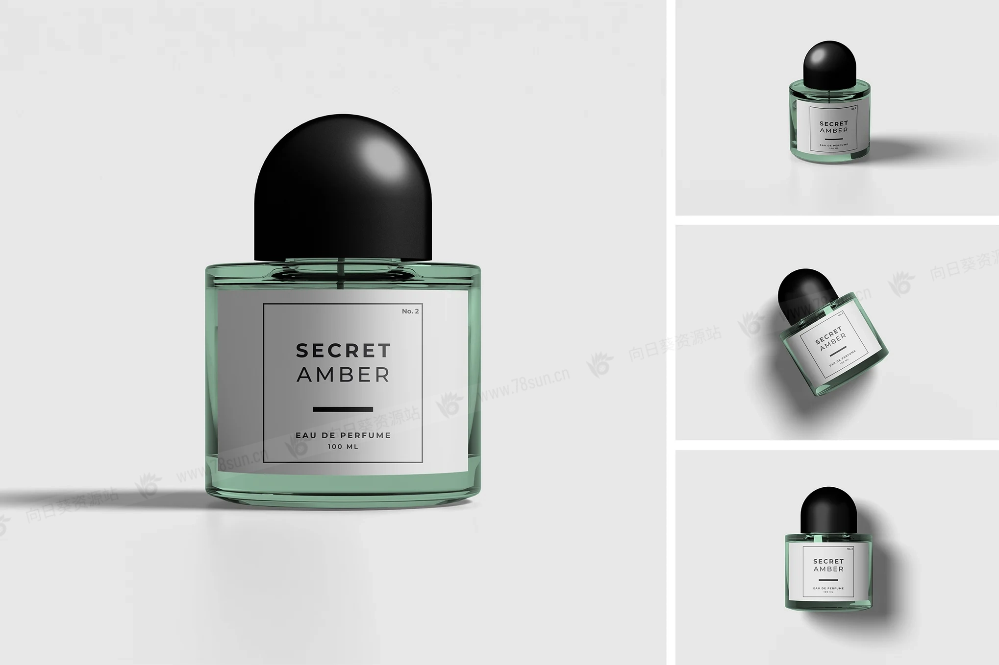 香水瓶品牌VI效果图展示智能贴图psd设计样机。只需使用智能对象放置您的艺术品,即可创建逼真的产品可视化效果,
