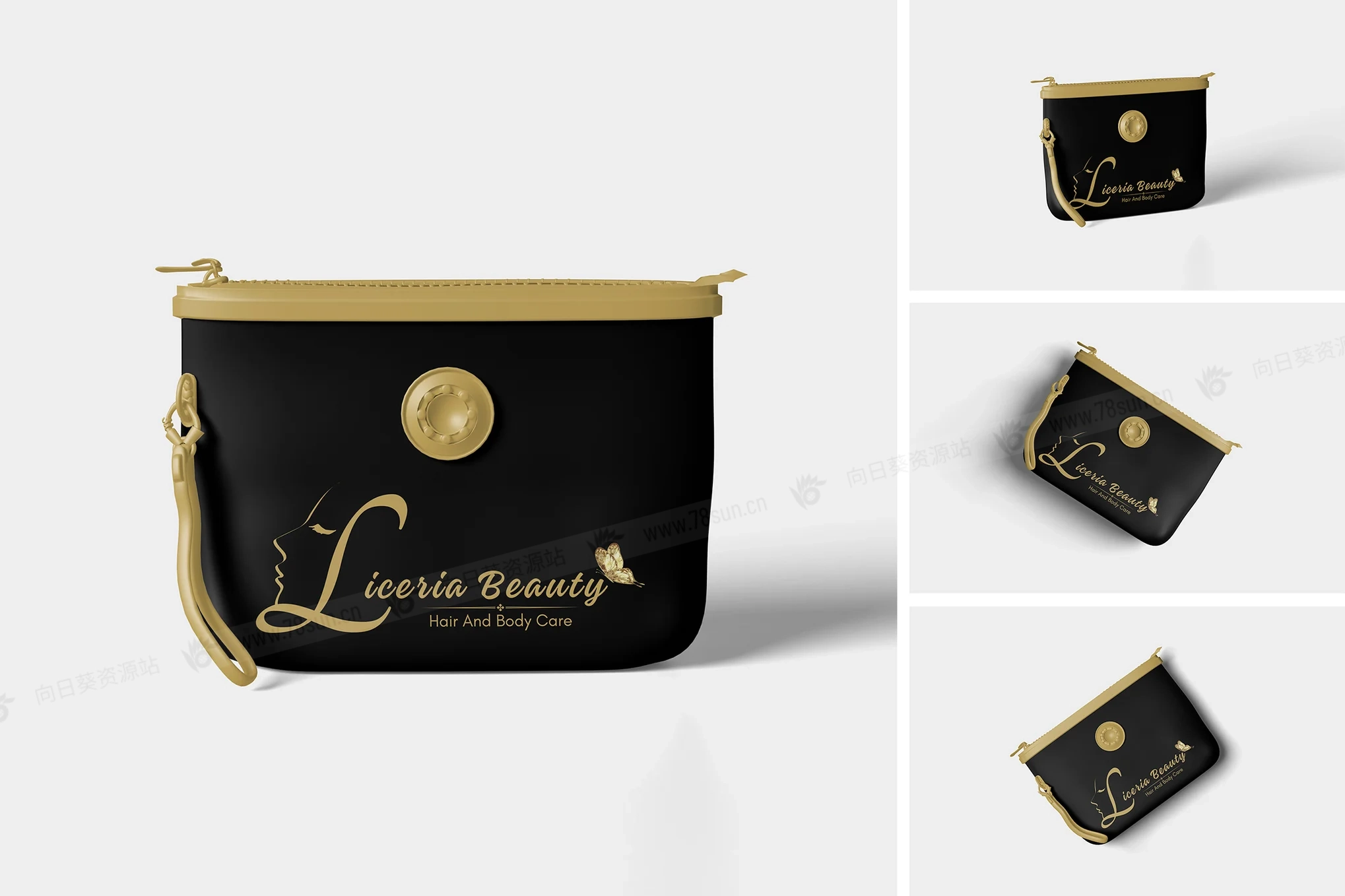 化妆包品牌VI效果图展示智能贴图psd设计样机,由 4 个化妆包模型组成,可专业展示您的设计。以 PSD Photoshop 格式提供,具有智能对象功能,可帮助您在几秒钟内将当前设计替换为您自己的设计。