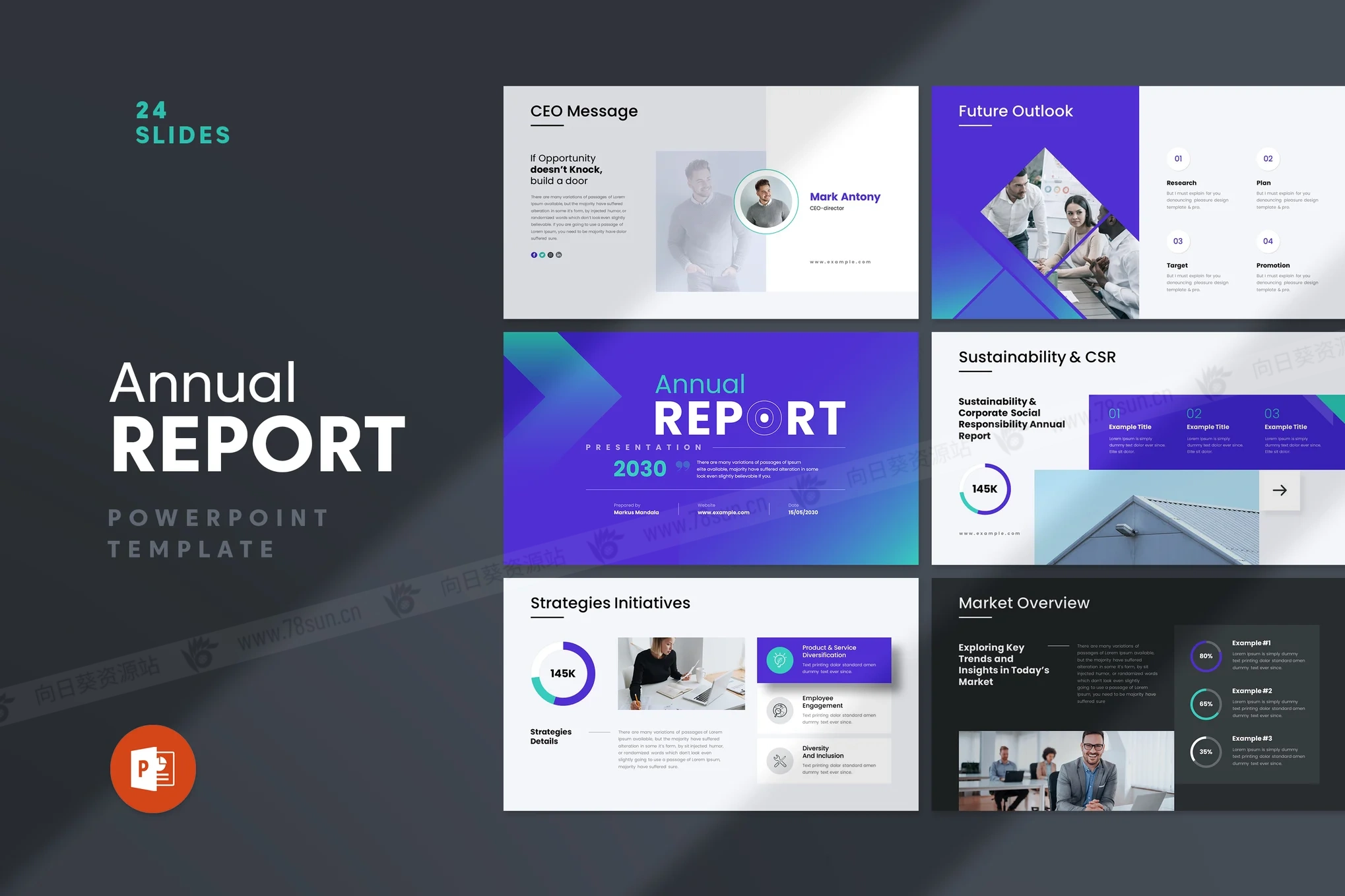 它包括执行摘要、公司概况、财务亮点、资产负债表、现金流、业务绩效、战略举措、可持续发展努力和未来展望的专用幻灯片。完全可定制,您可以轻松调整颜色、字体、图表和图形以匹配您的企业品牌。