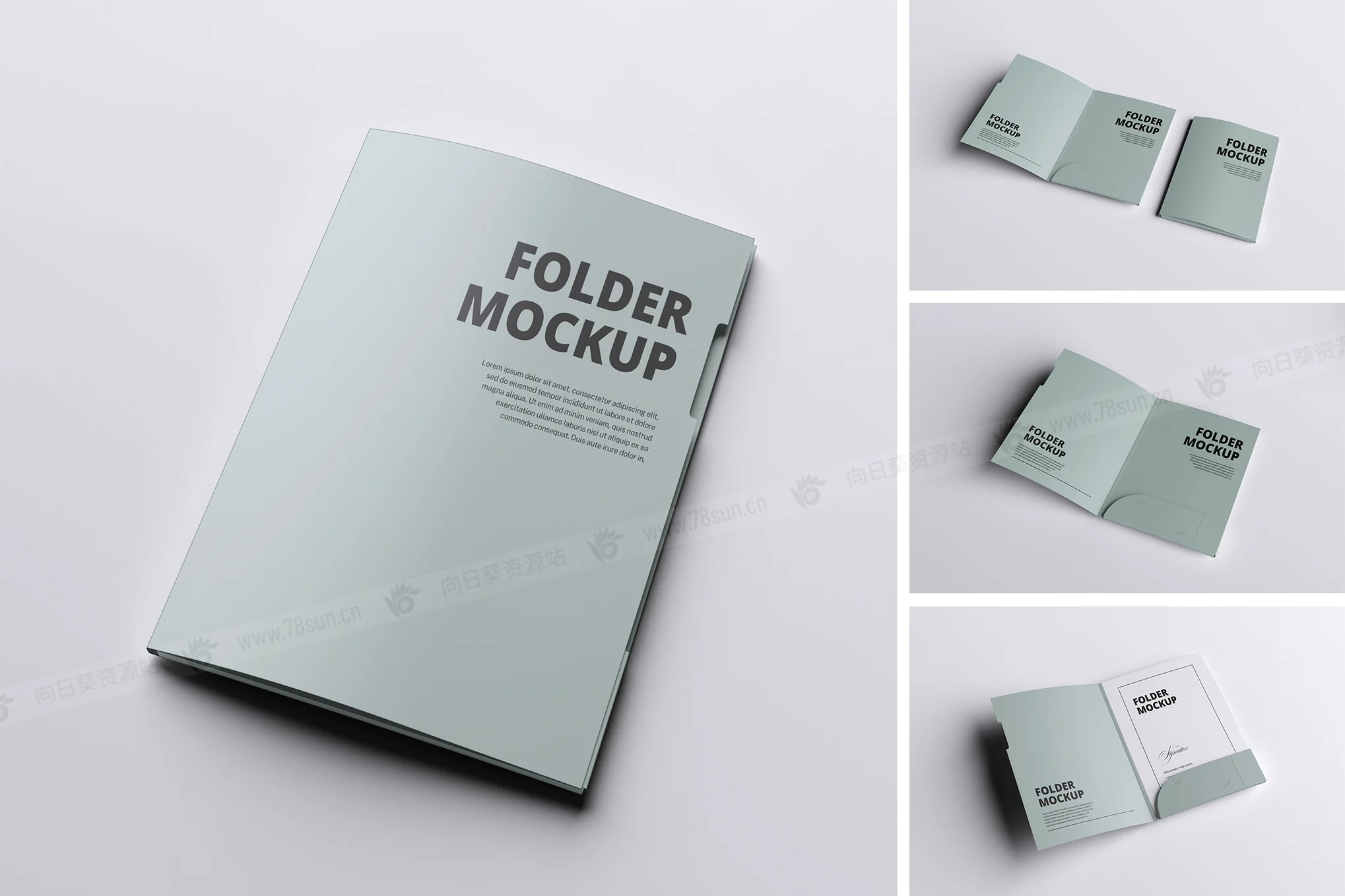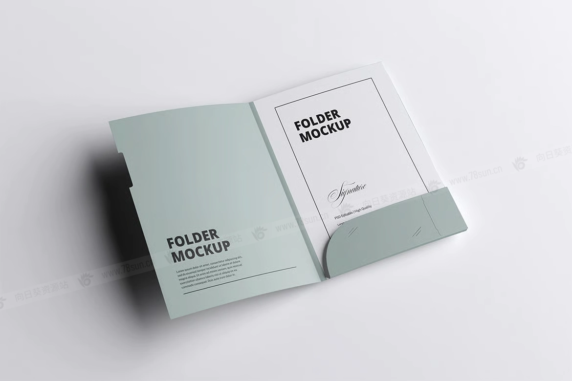 文件夹品牌VI效果图展示智能贴图psd设计样机,该模型包括 04 个带有分层良好 PSD 文件,并且该模型还使用智能对象功能,这意味着您可以在几秒钟内轻松快速地使用自己的设计更改当前设计。