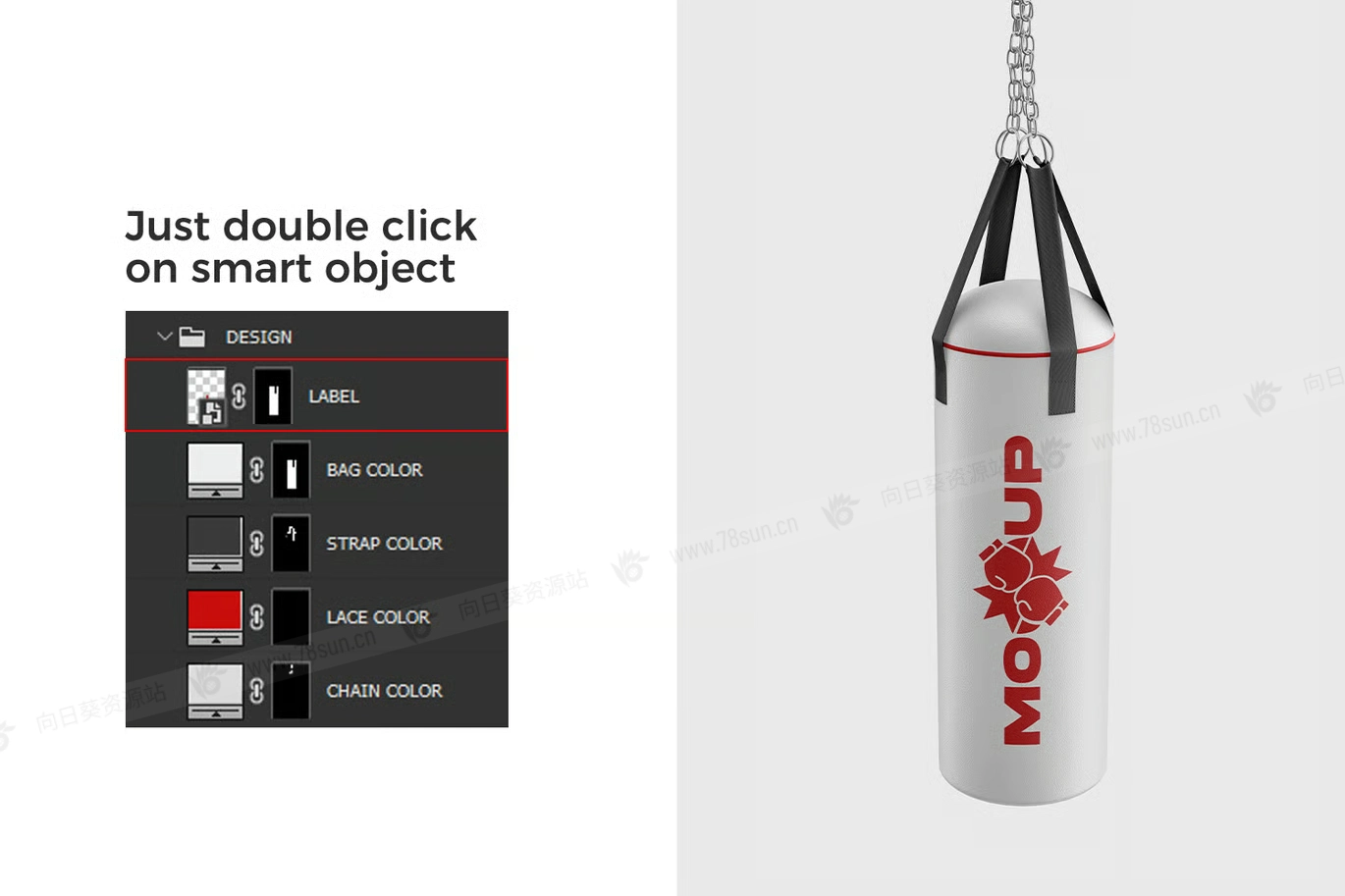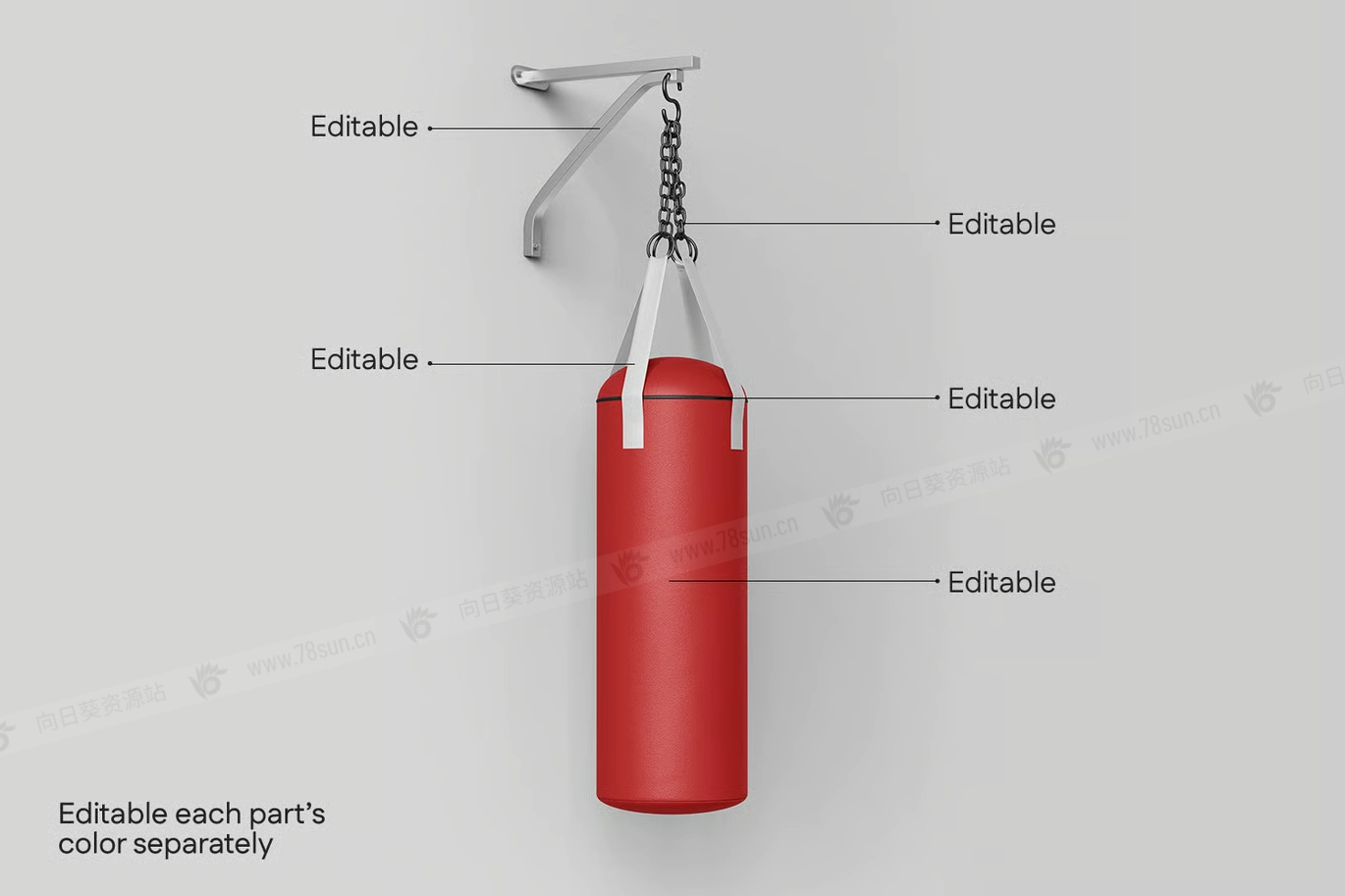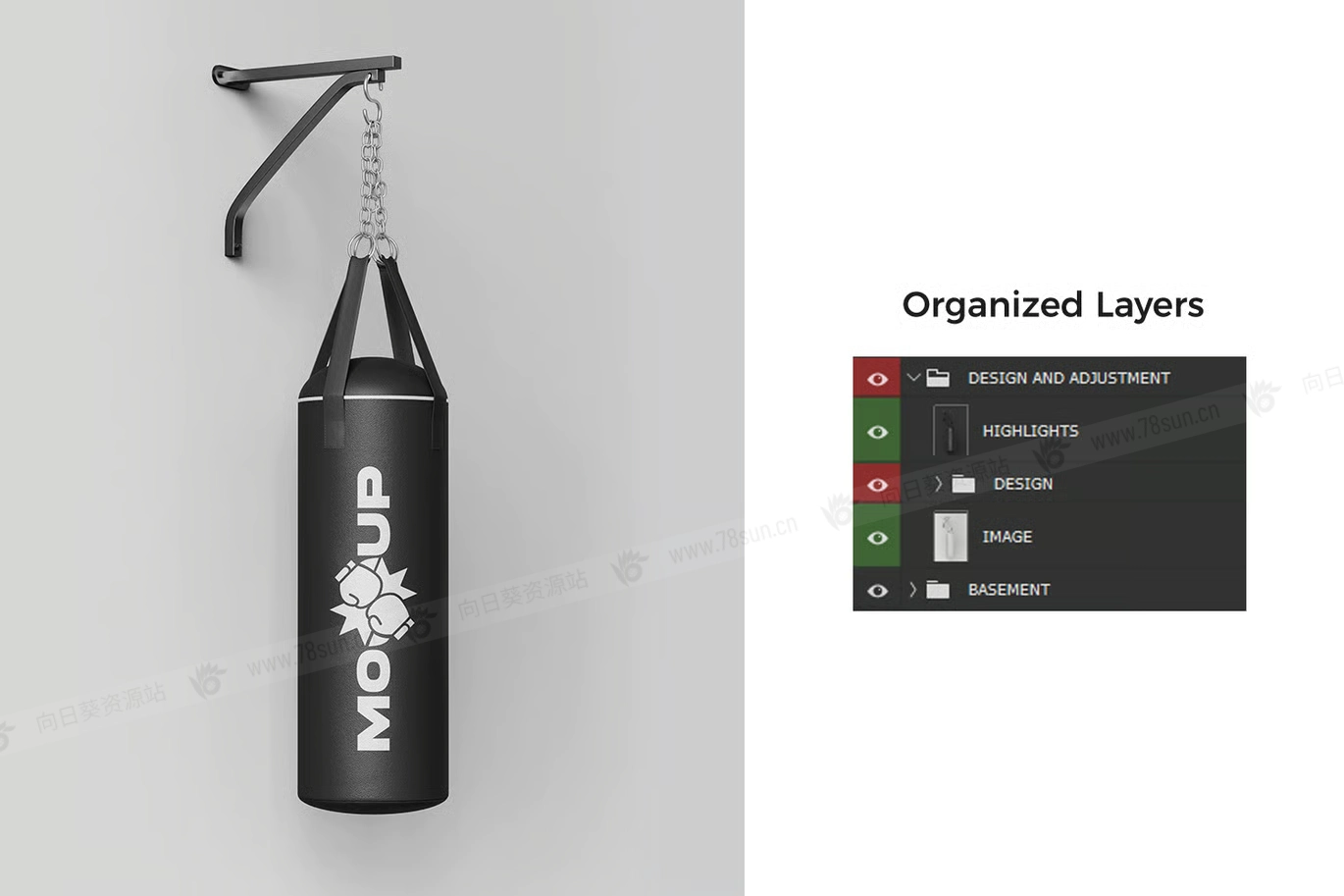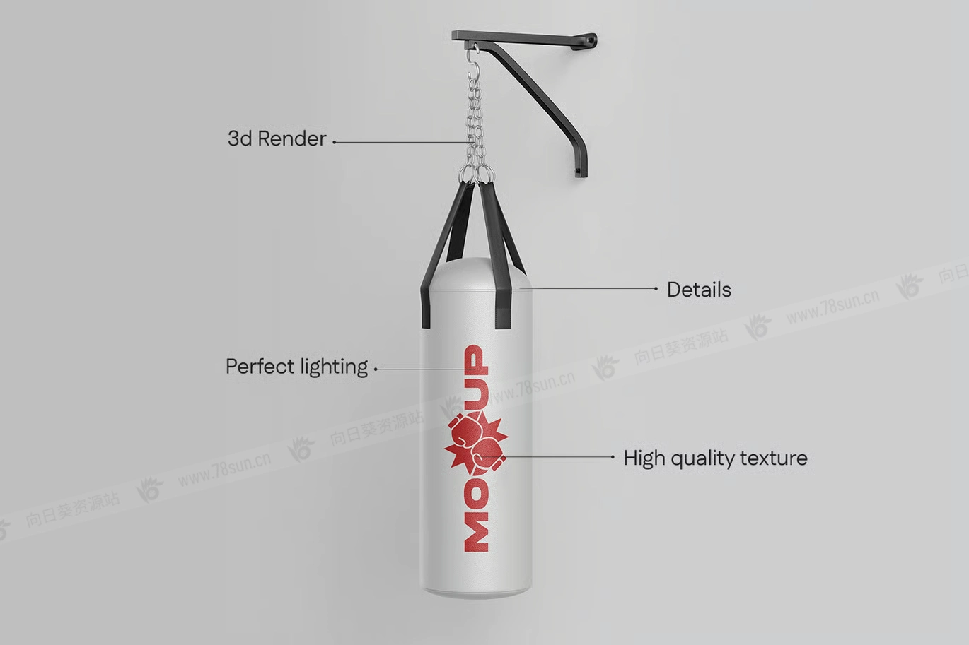 这款优质沙袋模型套装专为武术工作室和健身公司打造,可以增强您的品牌形象。由于集成了智能对象,定制变得轻而易举;只需放入您的设计,模型就会处理剩下的事情,完美地应用透视和阴影。
