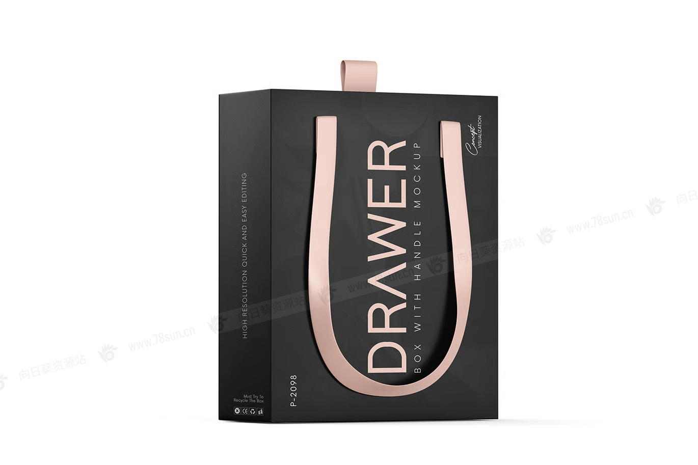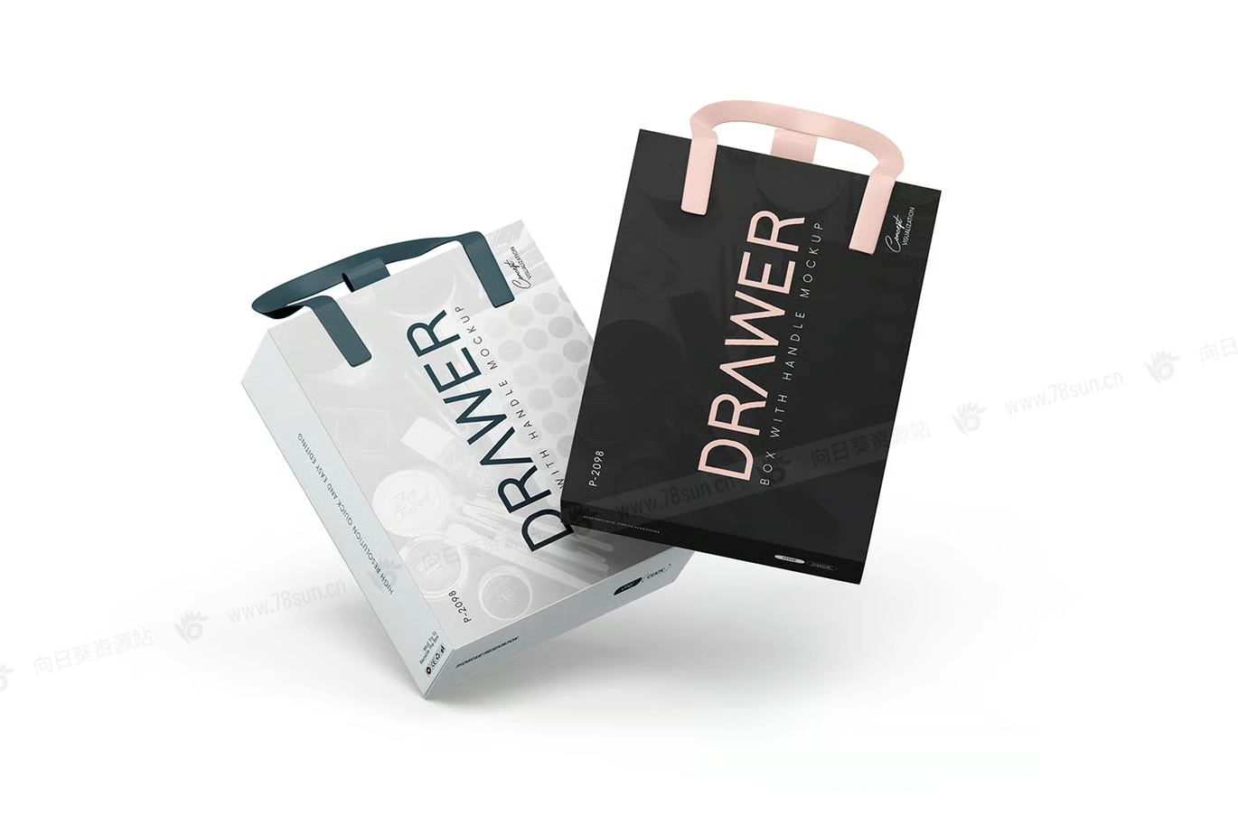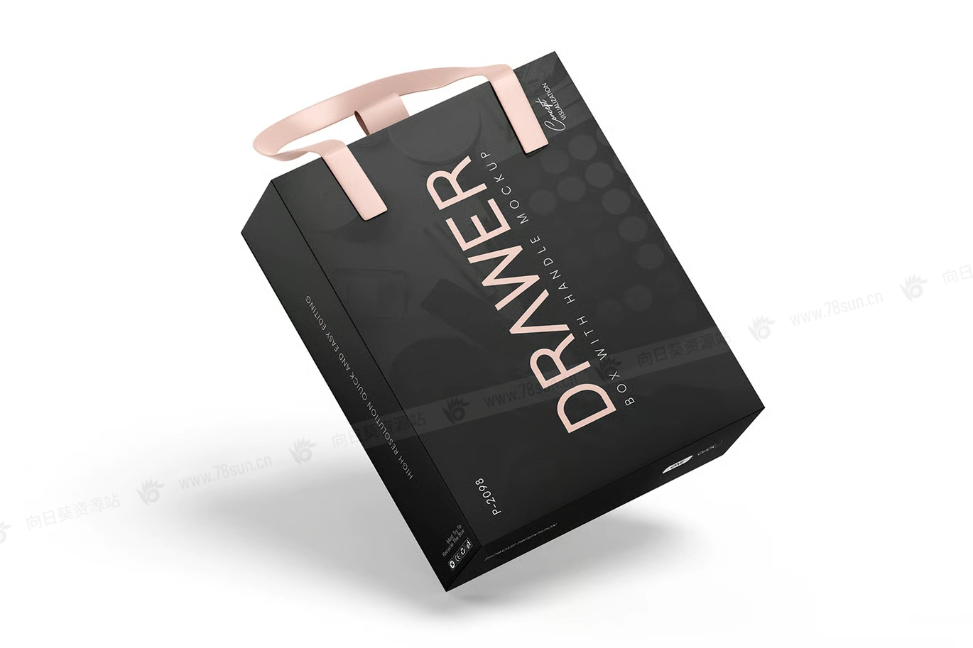 带把手滑动抽屉盒品牌VI效果图展示智能贴图psd设计样机,带有织物或丝带拉手,非常适合展示珠宝、化妆品或奢侈品礼品的包装设计。