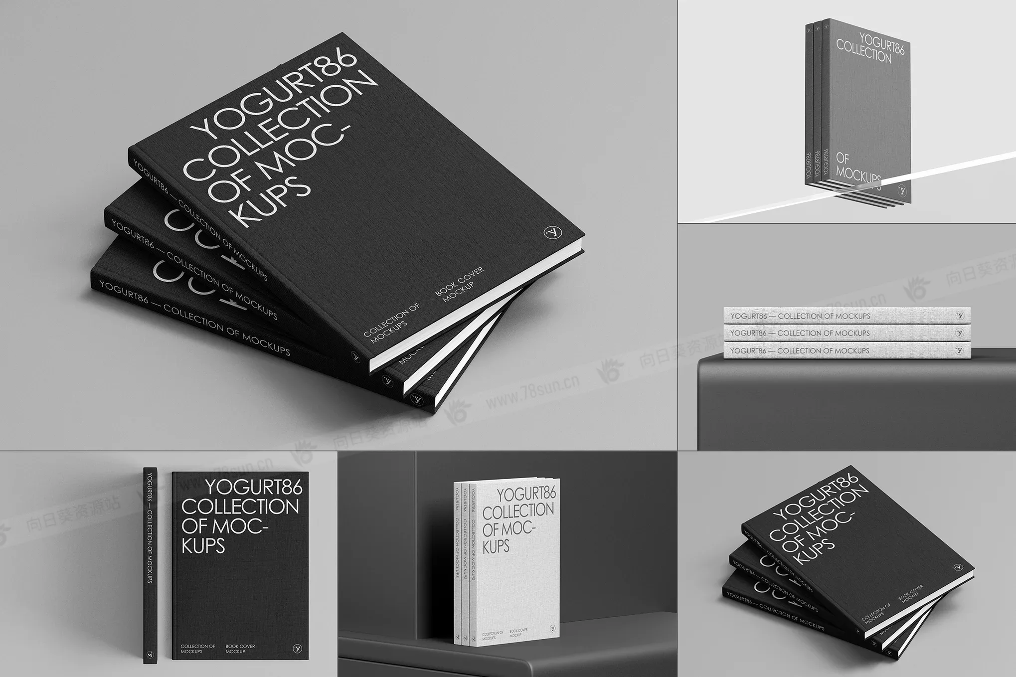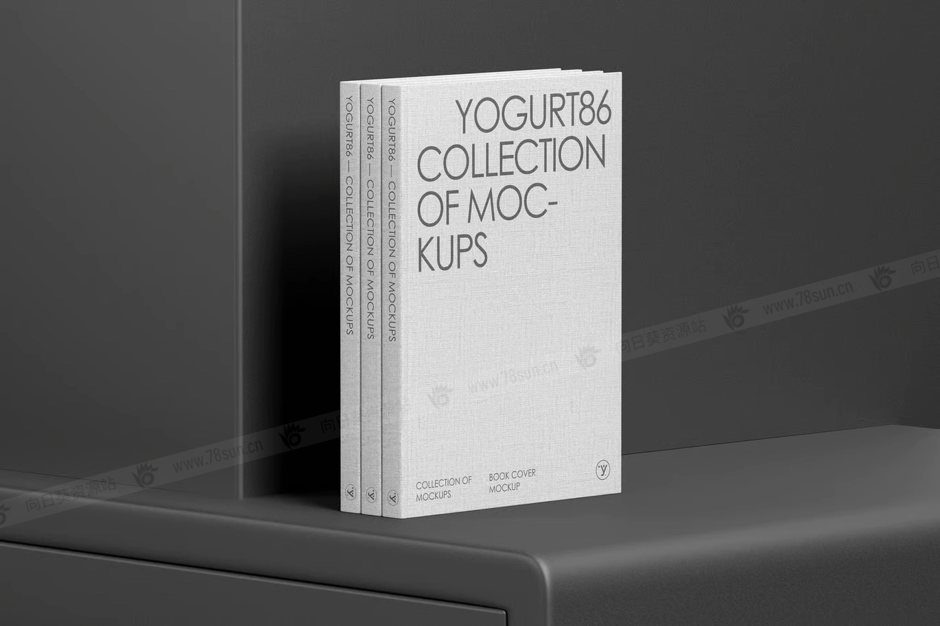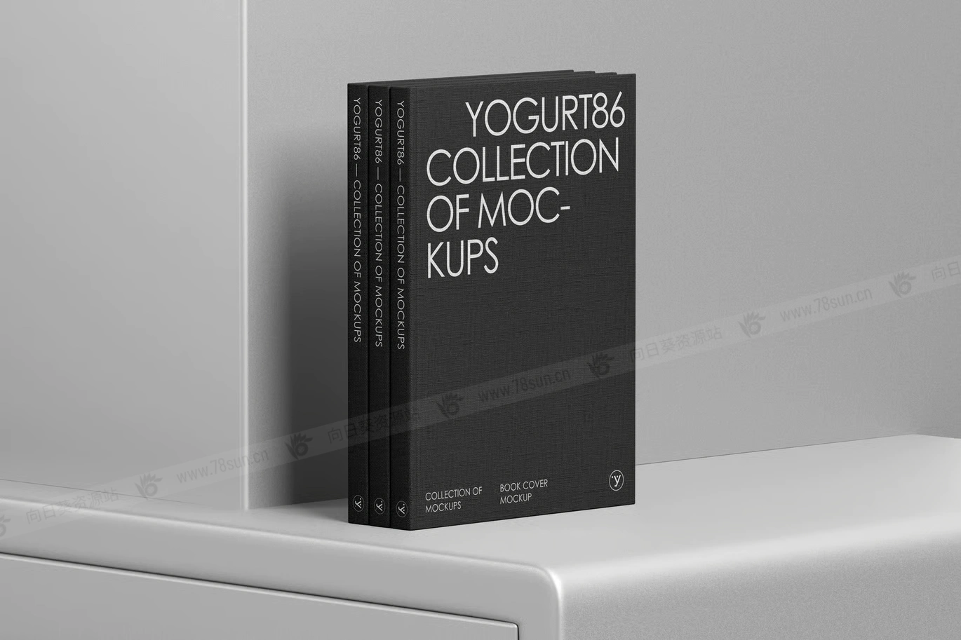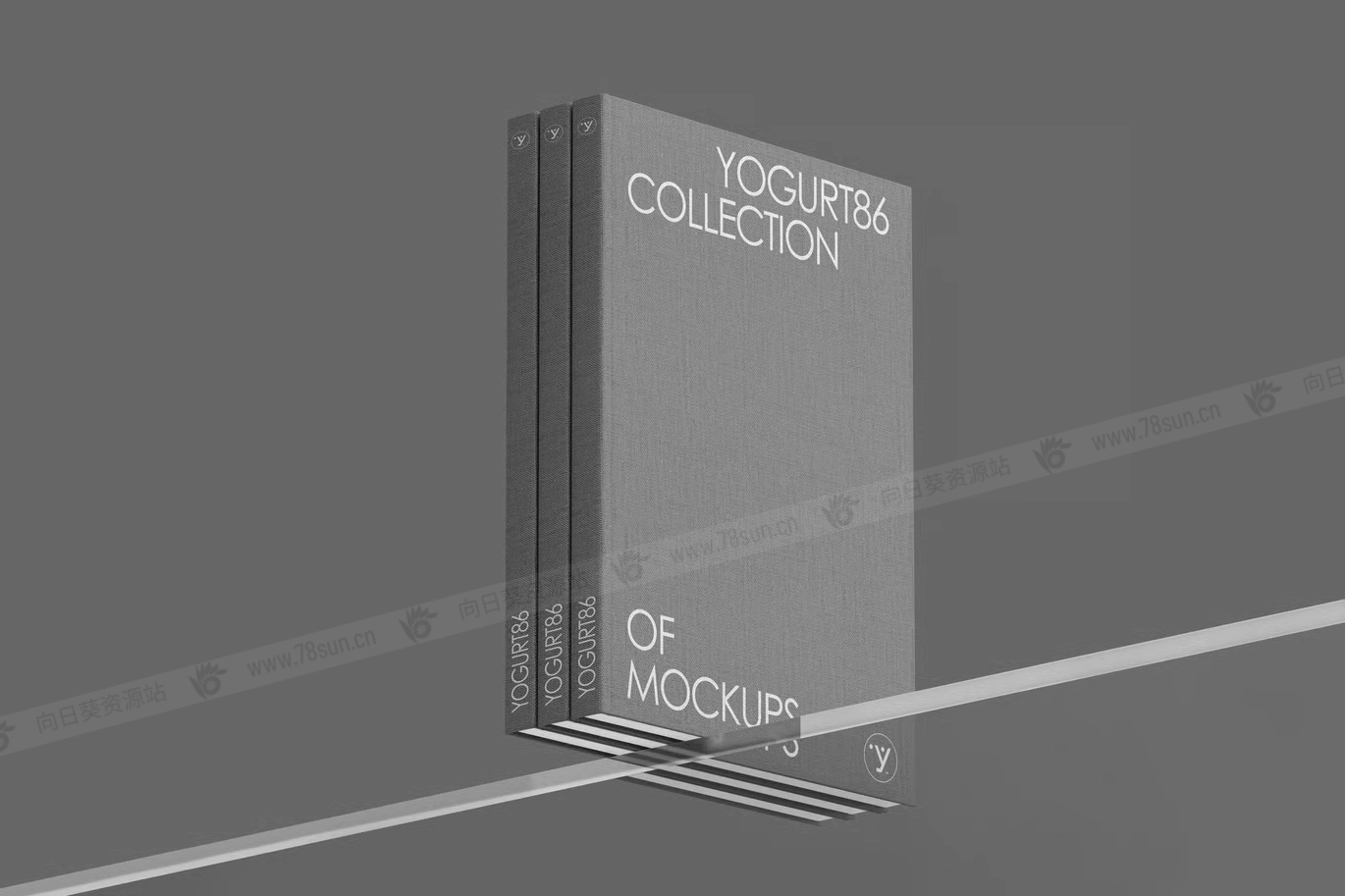 精装书籍封面品牌VI效果图展示智能贴图psd设计样机,包含三本优雅的精装书,具有柔软的画布般的质感。他们直立在透明的玻璃表面上,给场景带来通风和精致的外观。