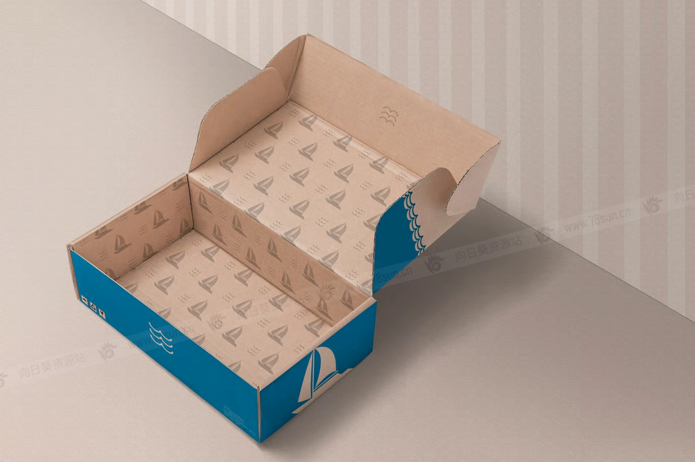 鞋子包装纸盒VI效果图展示智能贴图psd设计样机。这些模型让您可以完全自由地自定义其中的所有内容。只需使用智能对象选项来替换设计,使用图层来调整阴影和效果。