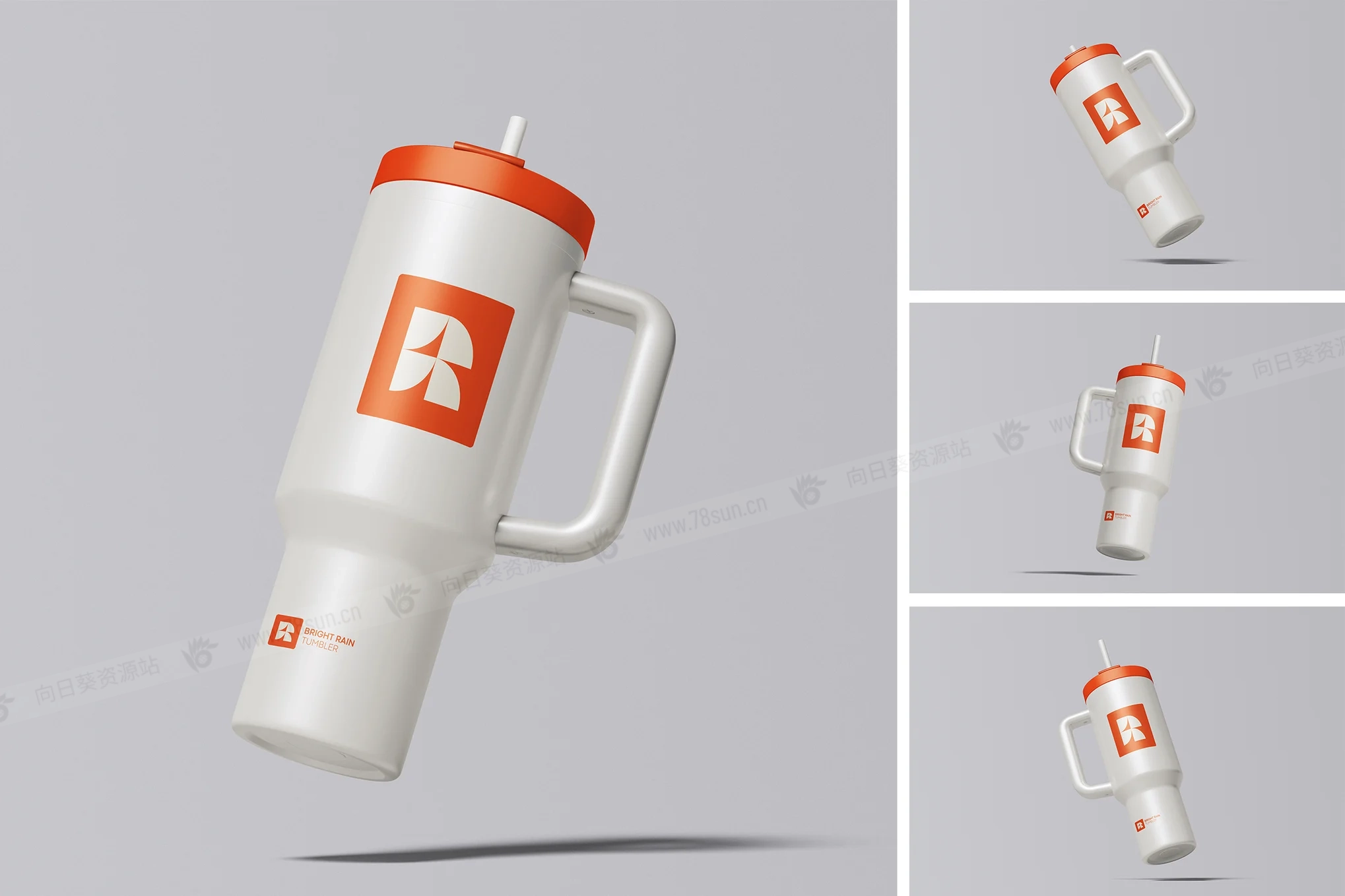 保温杯水壶水瓶品牌VI效果图展示智能贴图psd设计样机,该模型包括 4 个带有分层良好 PSD 文件,并且该模型还使用智能对象功能,这意味着您可以在几秒钟内轻松快速地使用自己的设计更改当前设计。