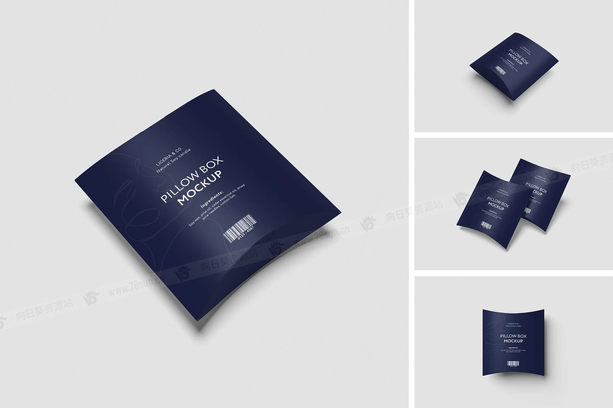 牛皮纸枕头形礼品包装盒VI效果图展示智能贴图psd设计样机。该模型包括 4 个带有分层良好 PSD 文件,并且该模型还使用智能对象功能,这意味着您可以在几秒钟内轻松快速地使用自己的设计更改当前设计。