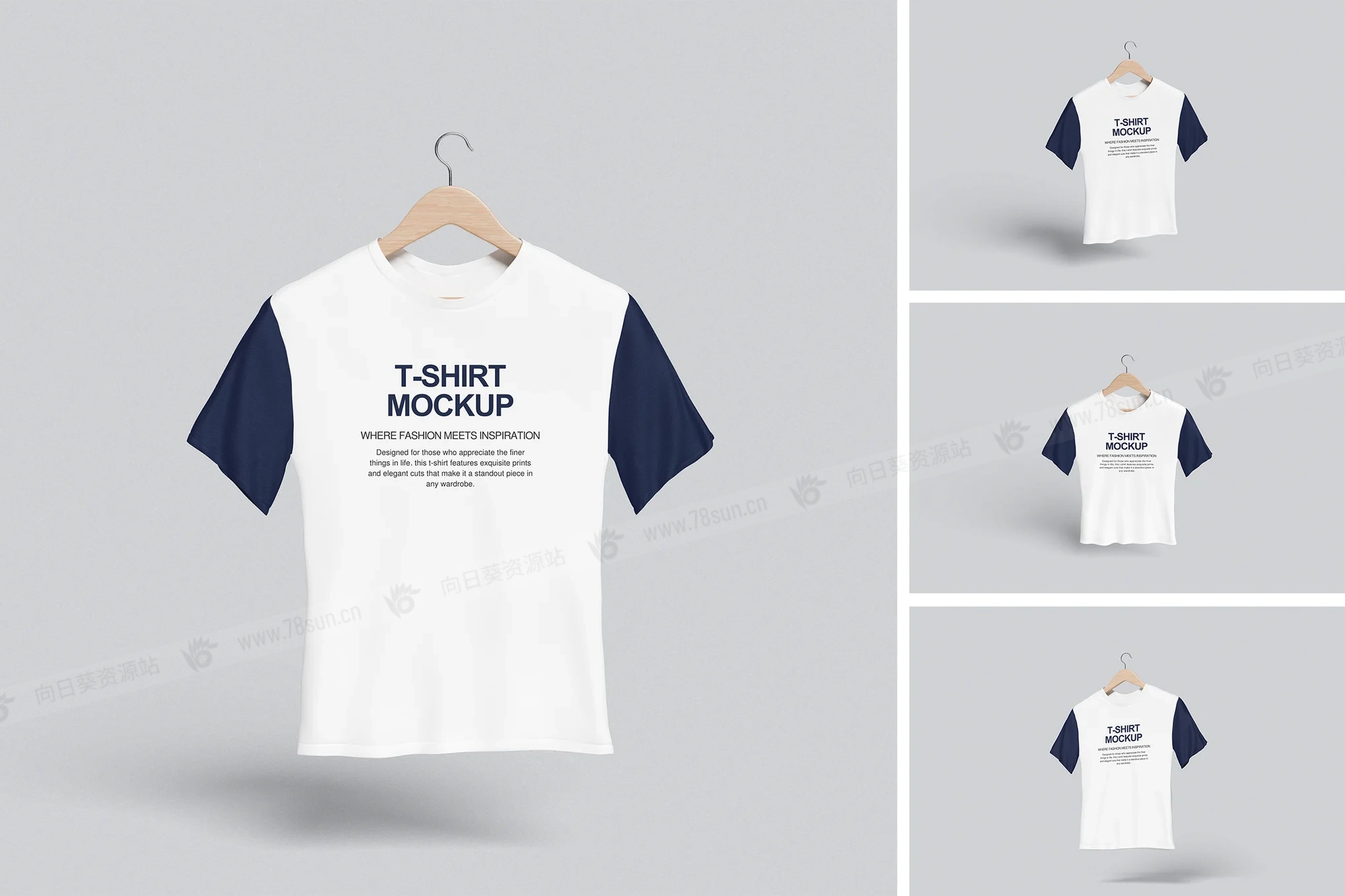 圆领短袖T恤服装品牌VI效果图展示智能贴图psd设计样机。该模型包括 4 个带有分层良好 PSD 文件,并且该模型还使用智能对象功能,这意味着您可以在几秒钟内轻松快速地使用自己的设计更改当前设计。
