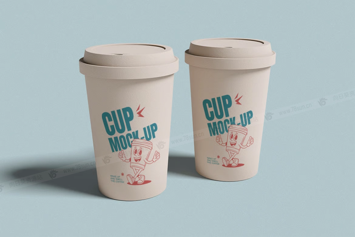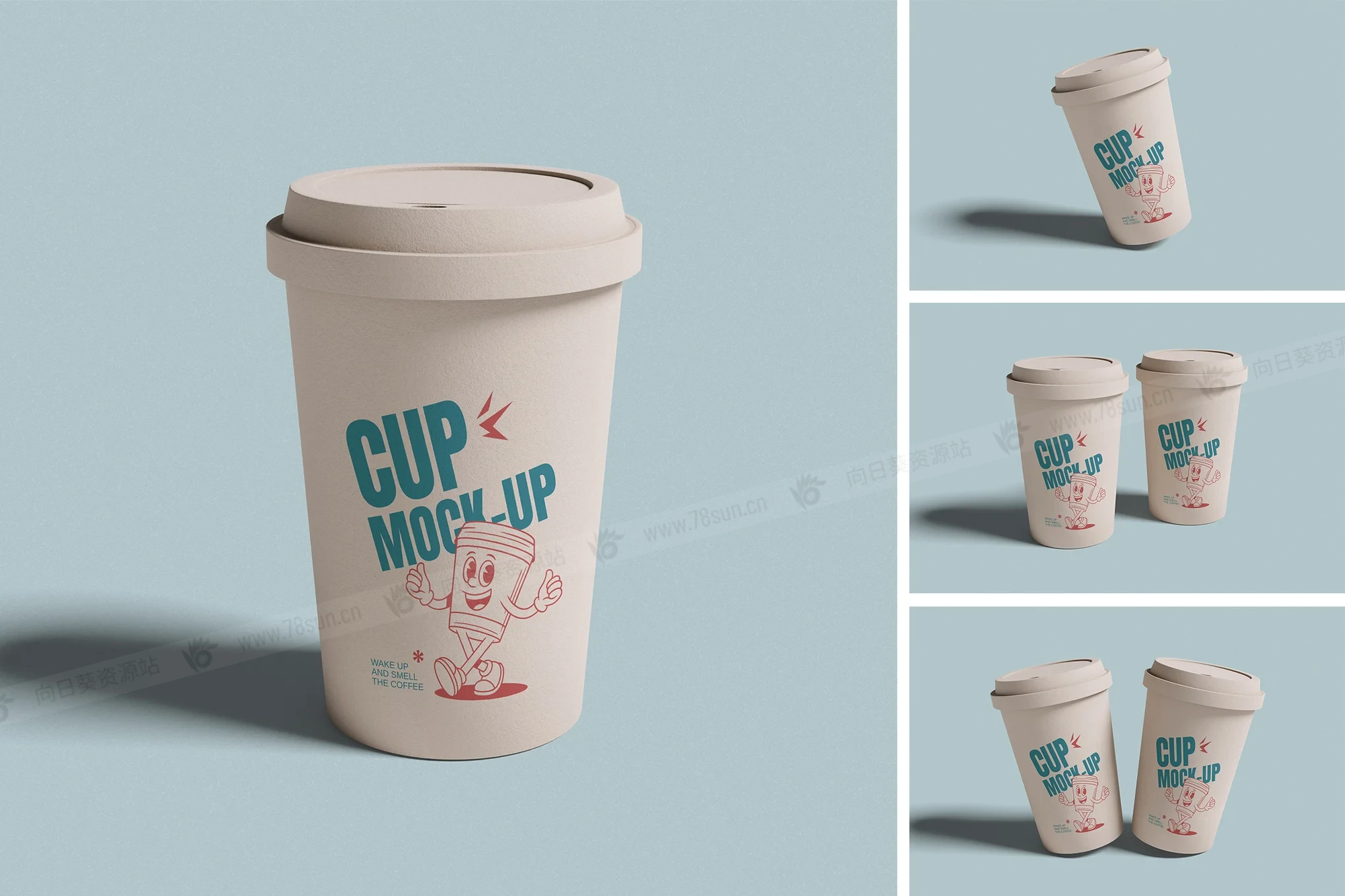 咖啡杯纸杯品牌VI效果图展示智能贴图psd设计样机。该模型包括 4 个带有分层良好 PSD 文件,并且该模型还使用智能对象功能,这意味着您可以在几秒钟内轻松快速地使用自己的设计更改当前设计。