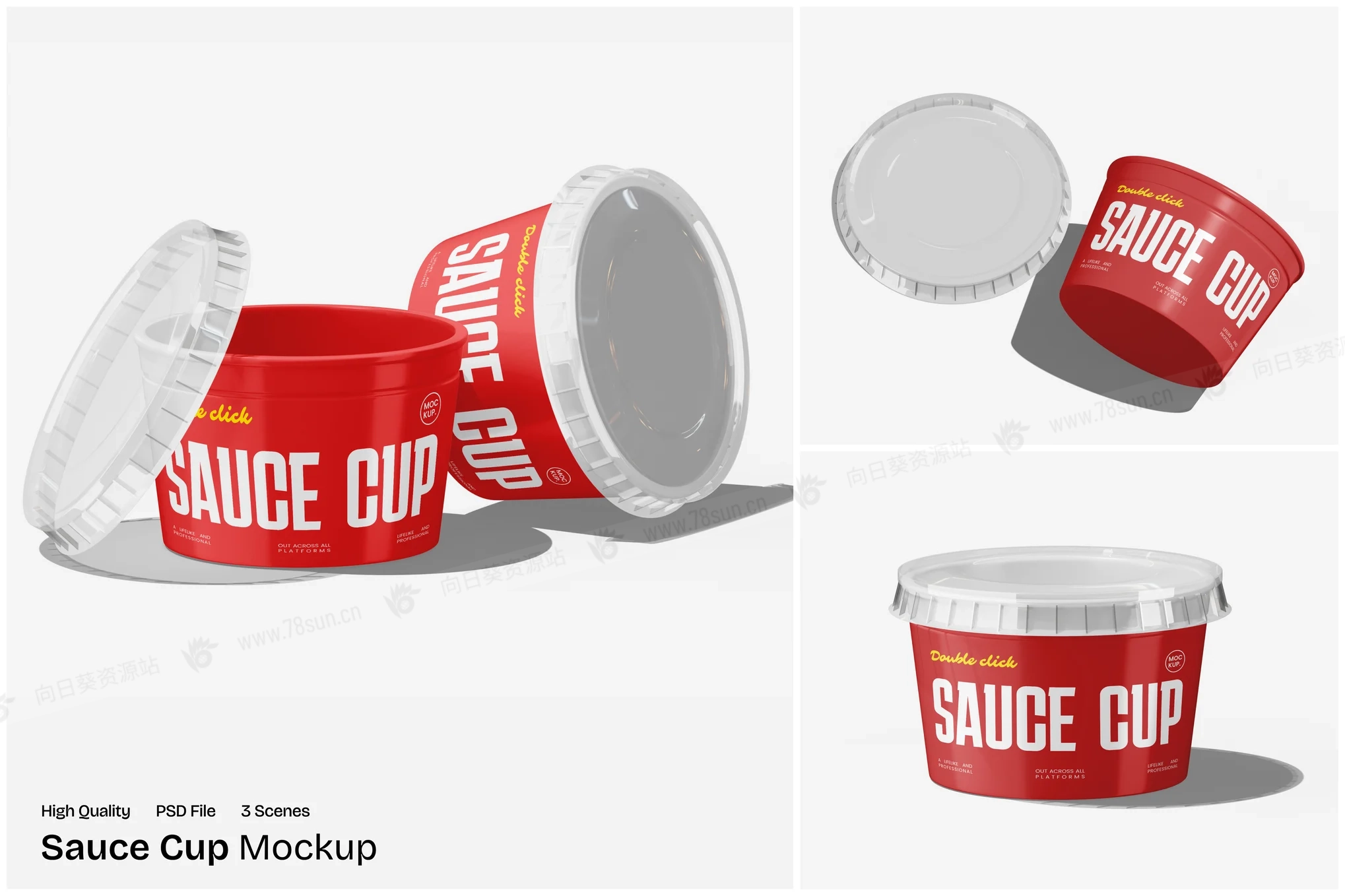 酱杯外卖食品塑料碗品牌VI效果图展示智能贴图psd设计样机,