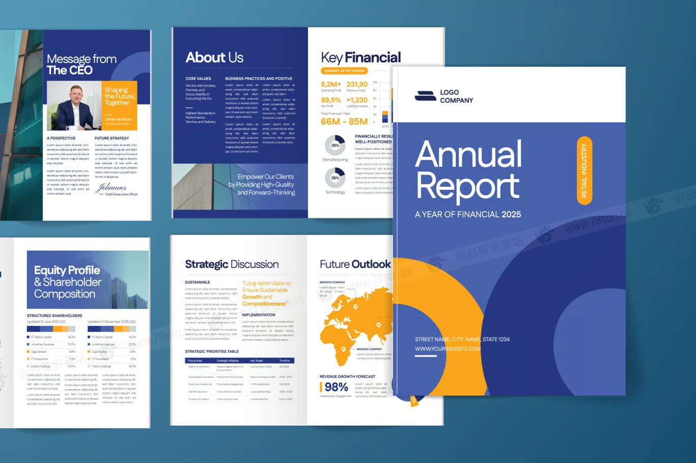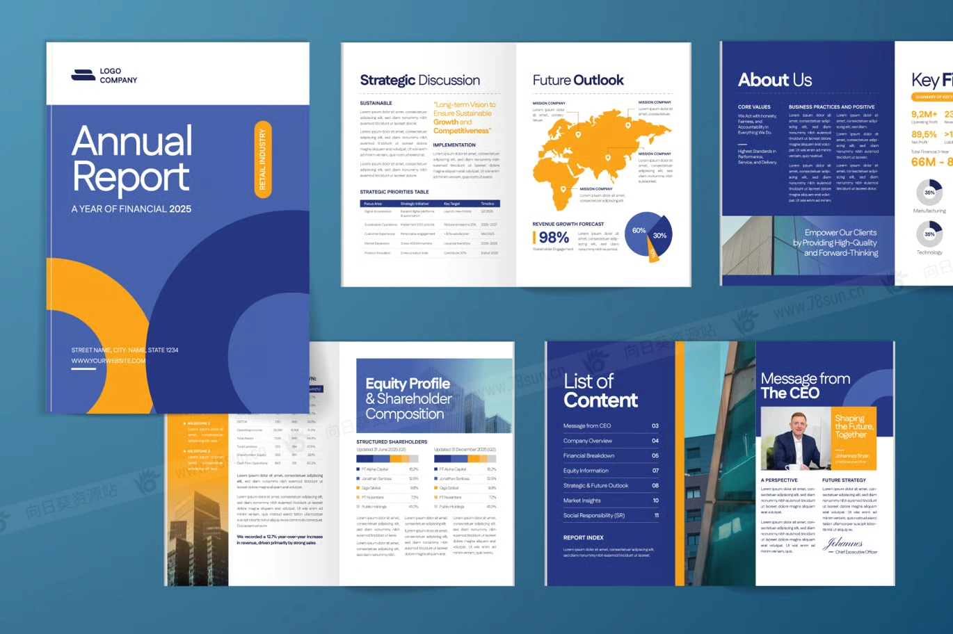 公司简介年度财务报告小册子杂志宣传册画册ai设计模板,此报告模板非常适合各种业务场景,例如财务分析、预算、预测、报告和合规性。