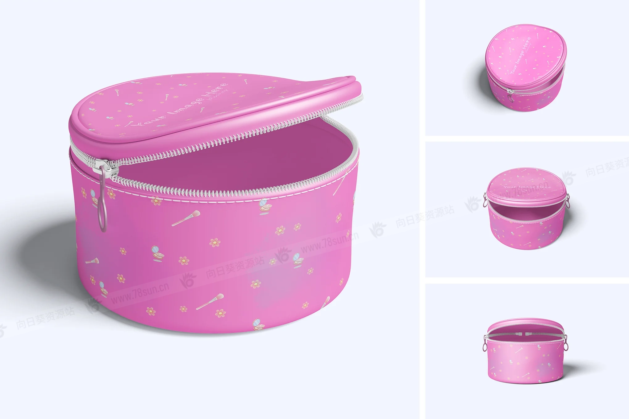 化妆包品牌VI效果图展示智能贴图psd设计样机,该模型包括 04 个带有分层良好 PSD 文件,并且该模型还使用智能对象功能,这意味着您可以在几秒钟内轻松快速地使用自己的设计更改当前设计。