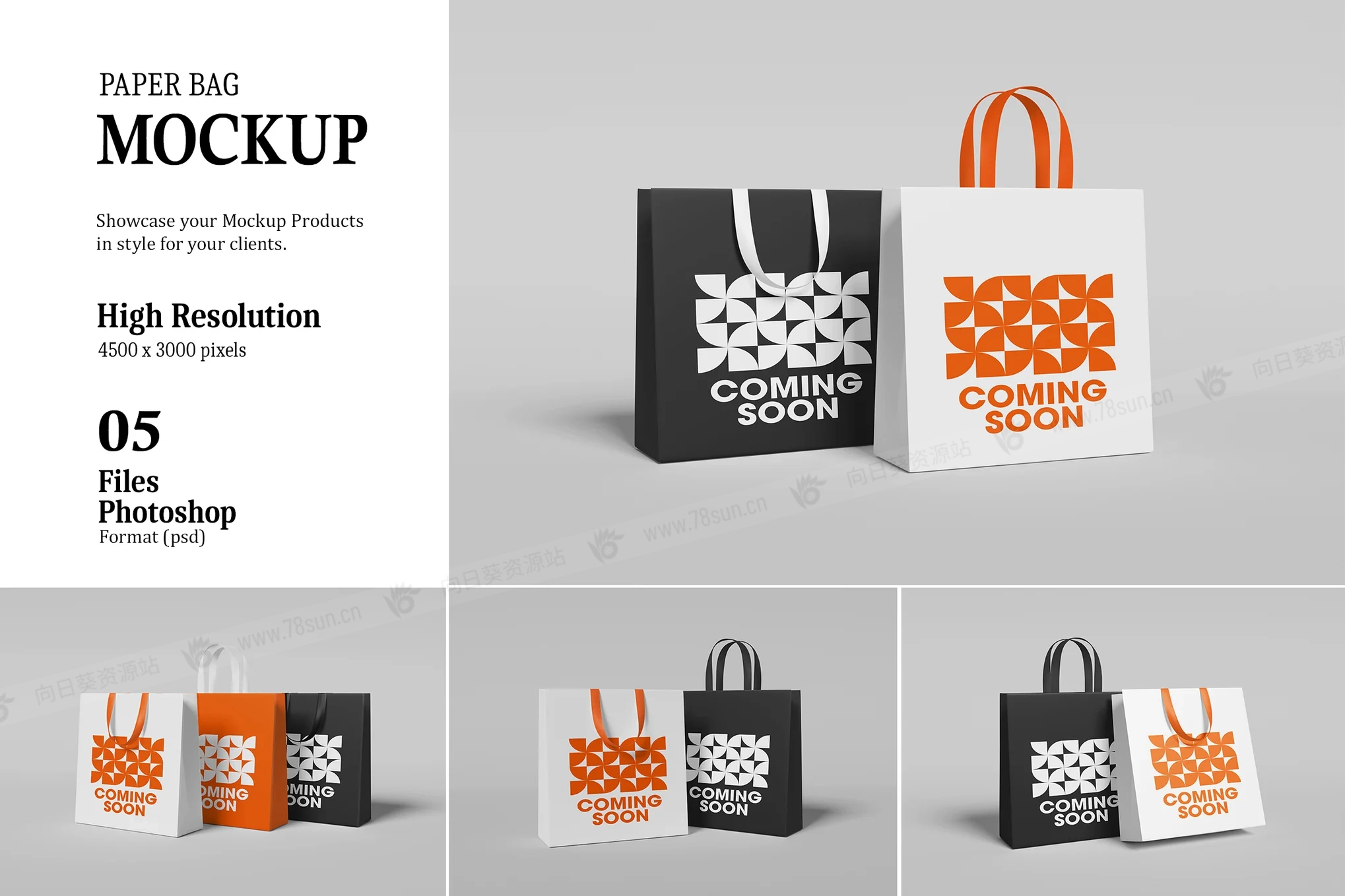 纸质手提袋购物袋品牌VI效果图展示智能贴图psd设计样机。此 PSD 文件使用智能对象功能,因此您可以轻松快速地更改模型内容。很简单!您只需双击智能对象,粘贴您的图稿,保存它,然后就完成了。