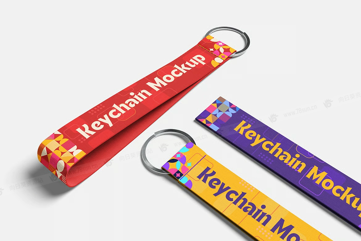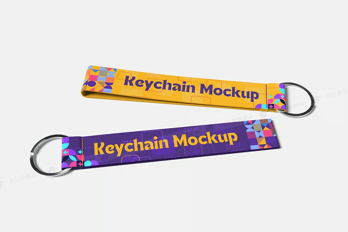 短挂绳钥匙链钥匙扣品牌VI效果图展示智能贴图psd设计样机。使用智能对象轻松替换您的设计,双击智能图层,复制并粘贴您的图稿,保存即可完成!