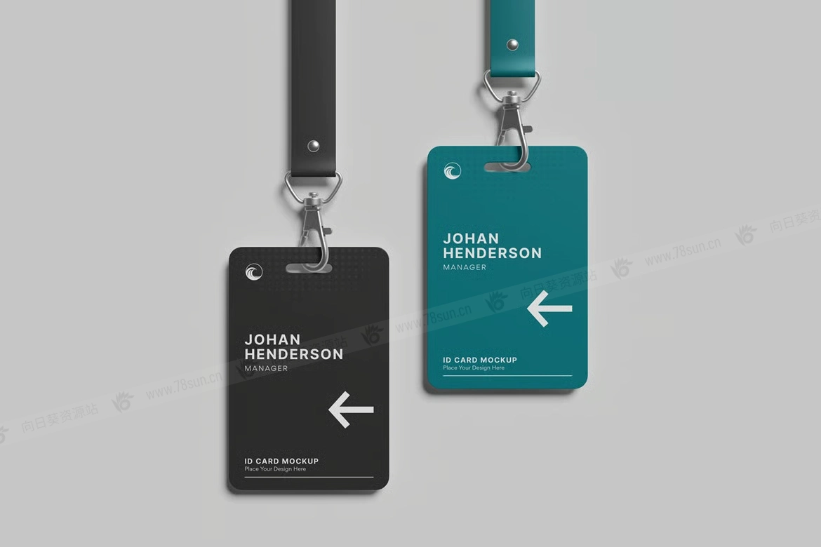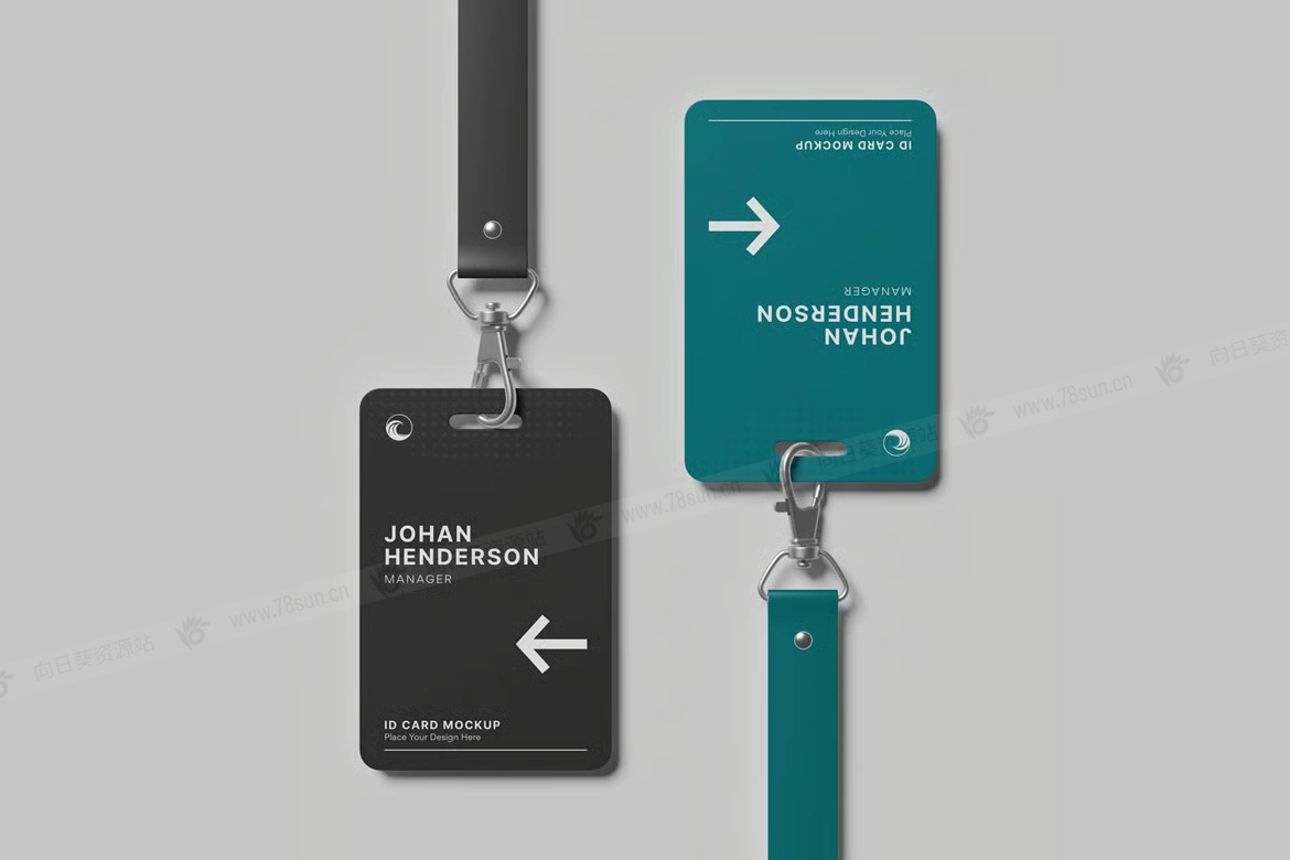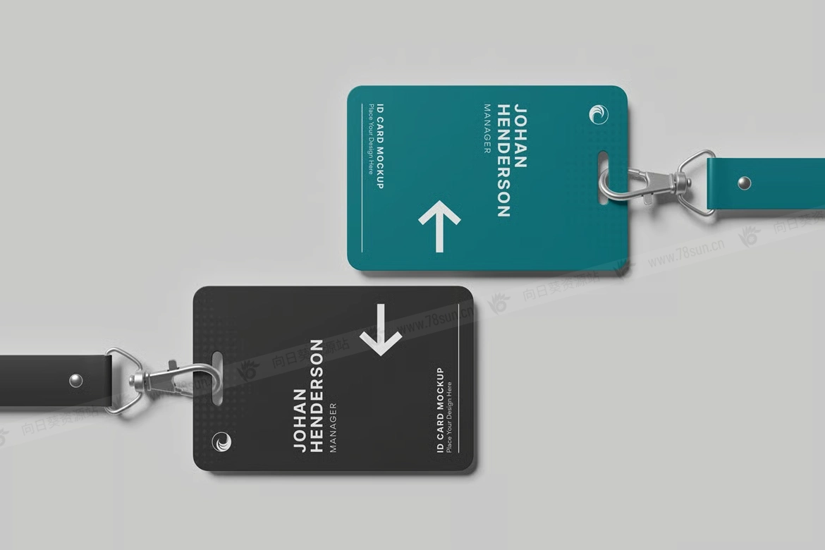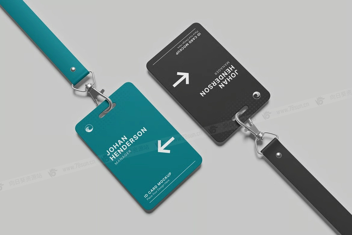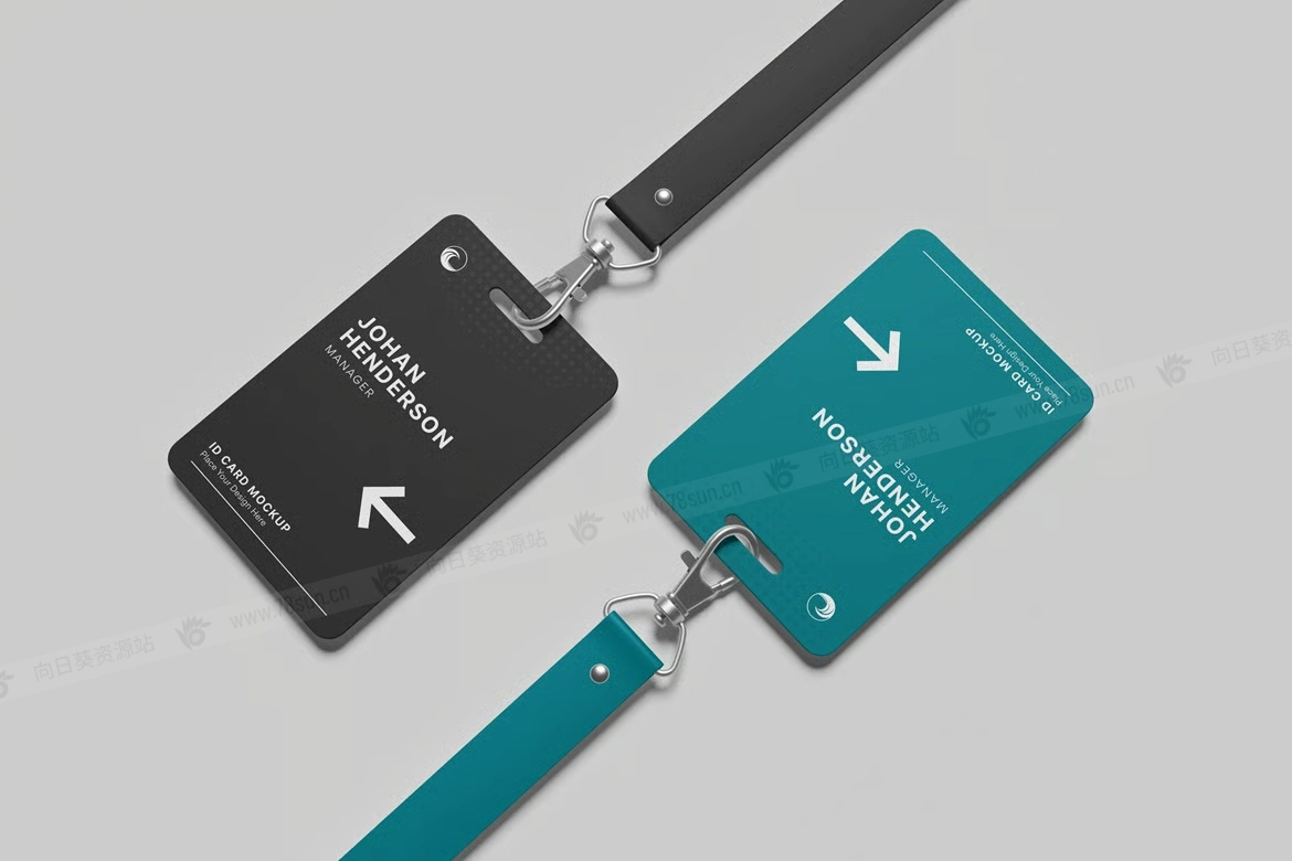 带挂绳工作证工卡ID卡品牌VI效果图展示智能贴图psd设计样机。此 PSD 文件使用智能对象功能,因此您可以轻松快速地更改模型内容。很简单!您只需双击智能对象,粘贴您的图稿,保存它,然后就完成了。