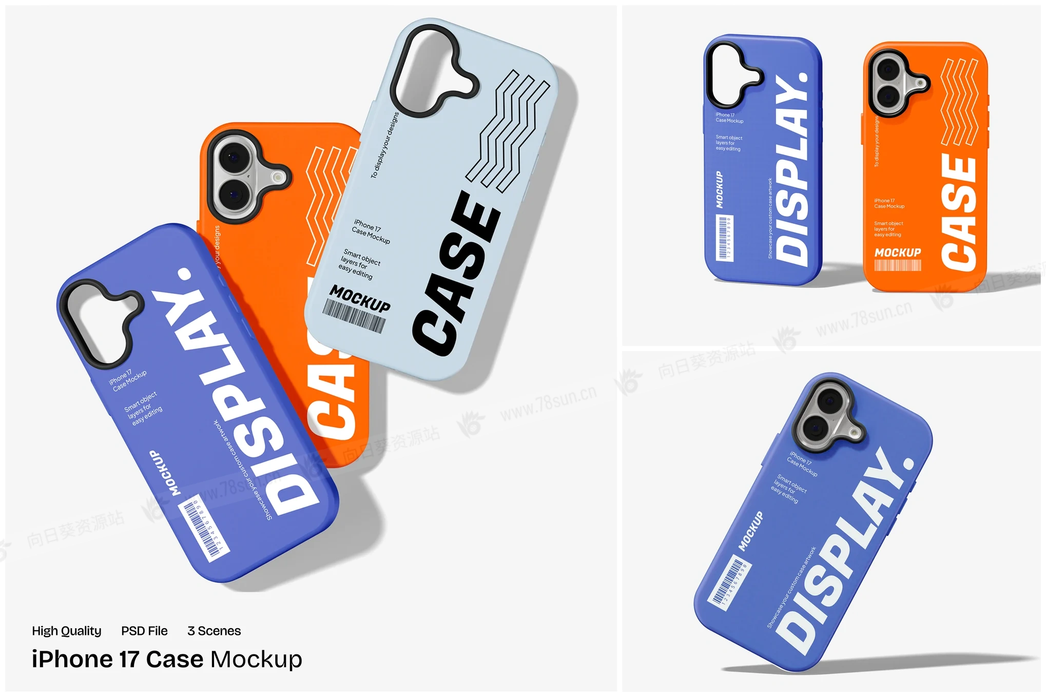 iPhone 17 手机壳品牌VI效果图展示智能贴图psd设计样机,