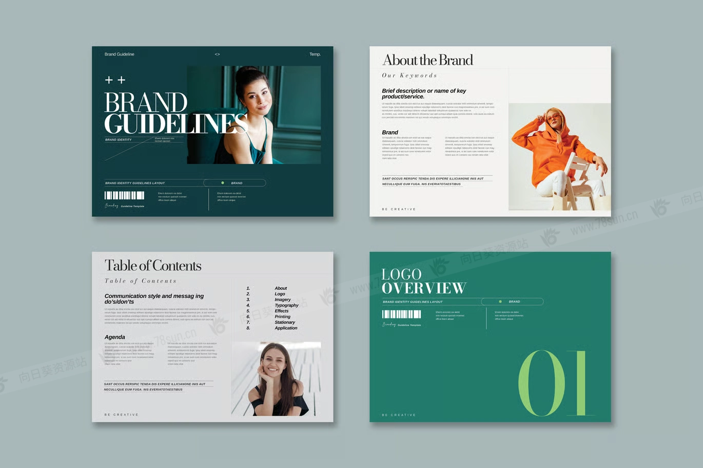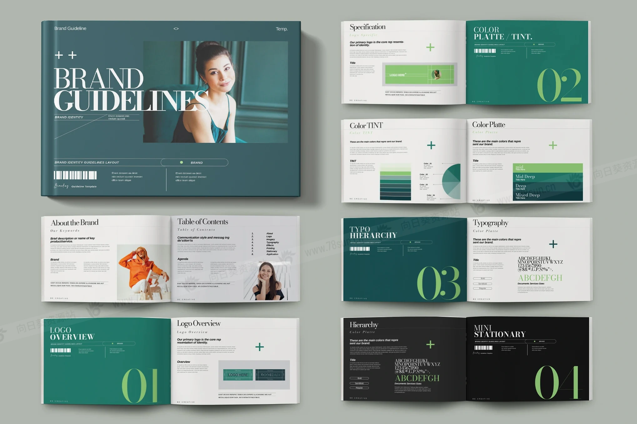 横版品牌指南小册子杂志宣传册画册indd设计模板,添加徽标和图像,并编辑您的品牌颜色和排版,