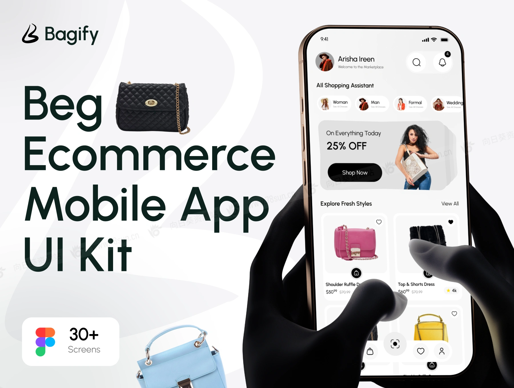 时尚服装鞋包电子商务app ui界面设计fig源文件模板,专为时尚零售商、包袋品牌和在线商店打造。该套件采用时尚的移动优先设计和直观的购物流程,包括所有必要的屏幕,可精美地展示产品、吸引购物者并推动无缝购买。从产品发现和详细的商品视图到购物车、愿望清单和安全结账流程,每个屏幕都旨在增强可用性并提高转化率。