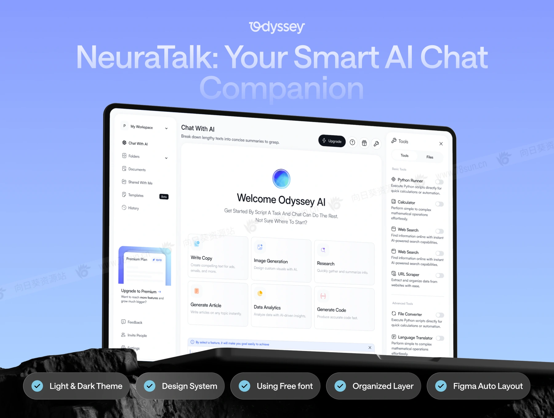 AI人工智能聊天网站后台管理系统web ui界面设计fig源文件模板,是一个现代人工智能驱动的平台,专为写作、研究、构思和与智能助手交互而设计,所有这些都在一个无缝的工作空间中完成。无论您是撰写博客文章、生成图像、进行深入研究还是发出语音命令,NeuraTalk 都能为高速创建和协作提供简化、直观的环境。
