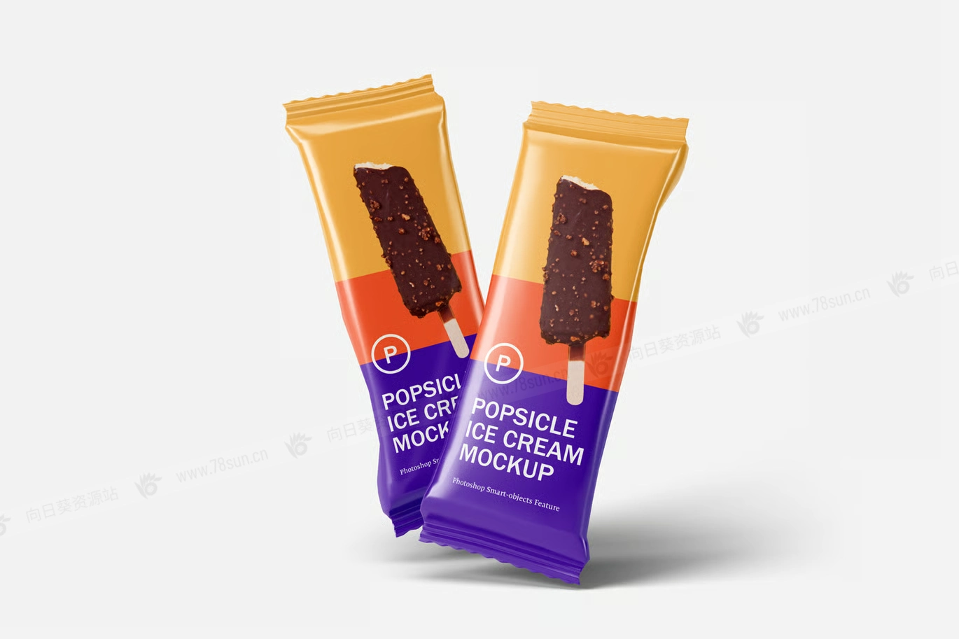 冰棒冰棍塑料包装袋品牌VI效果图展示智能贴图psd设计样机。以 PSD Photoshop 格式提供,具有智能对象功能,可帮助您在几秒钟内将当前设计替换为您自己的设计。