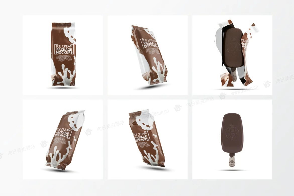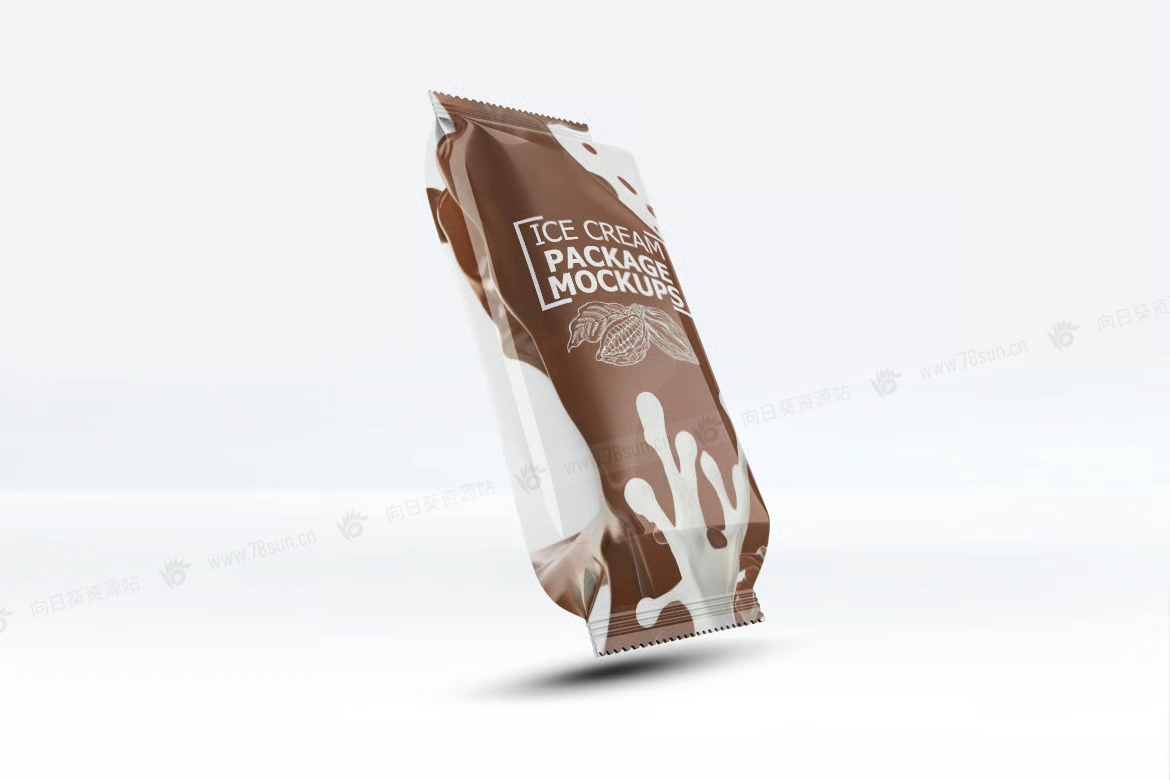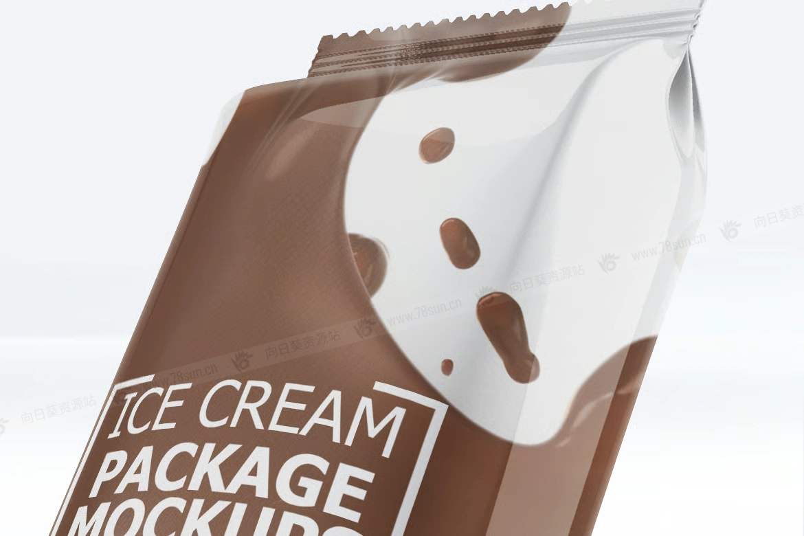 冰棒冰棍塑料包装袋品牌VI效果图展示智能贴图psd设计样机,完全可编辑的。使用包含的智能对象,您可以编辑图形画布的图层或完全删除它们并将您自己的图形放入其中,而无需担心透视、光影效果。您可以调整光、影和反射的效果。