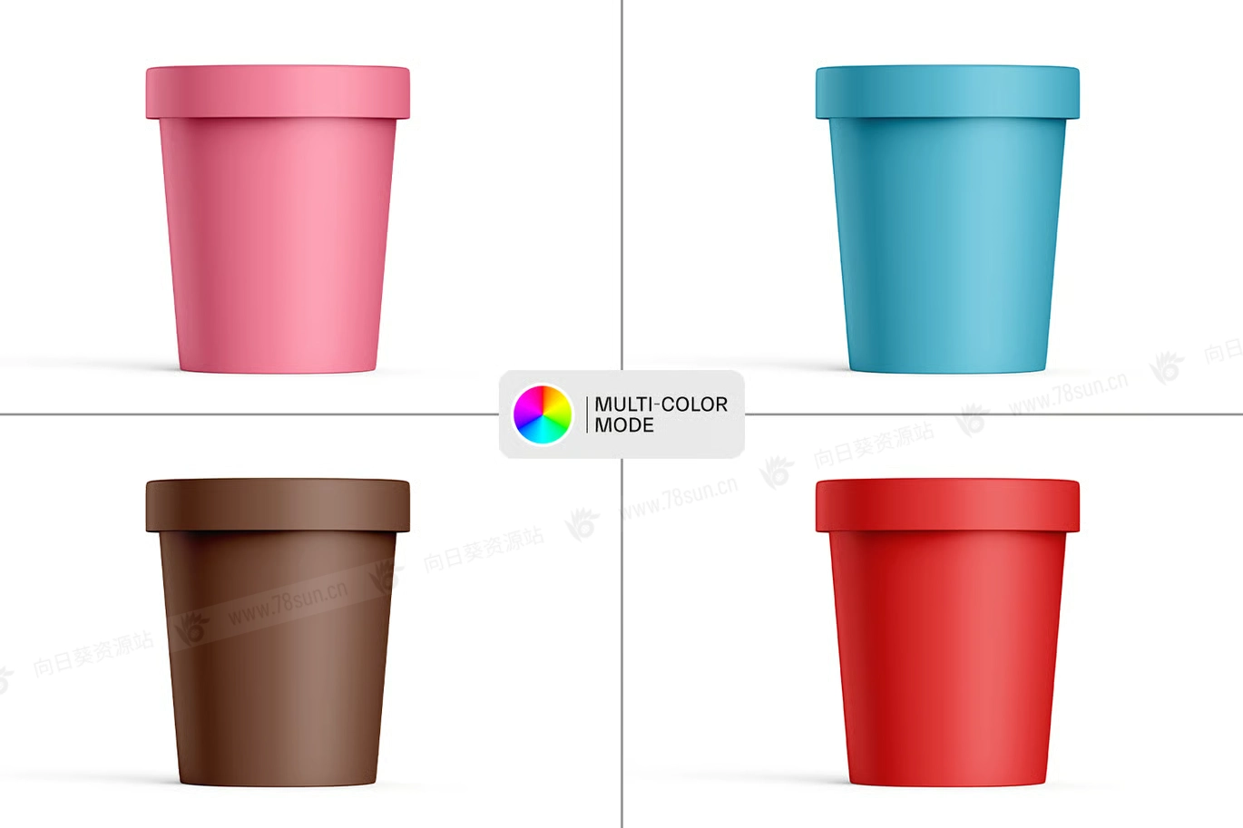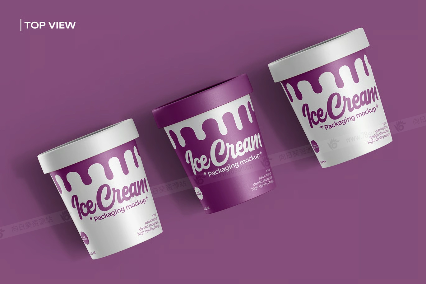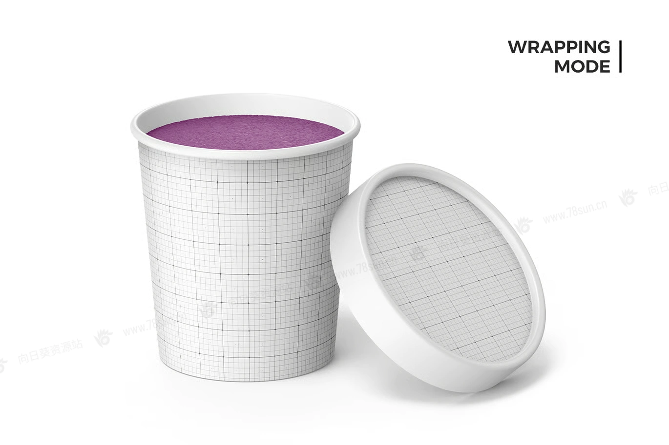 桶装冰淇淋纸杯品牌VI效果图展示智能贴图psd设计样机,这个冰淇淋杯模型是一个高质量、完全可定制的PSD模板,旨在展示您的冰淇淋、酸奶或冷冻甜点包装,具有逼真的细节。该模型非常适合塑料杯、零食桶或乳制品甜点,具有可编辑的智能对象,可快速轻松地插入设计。
