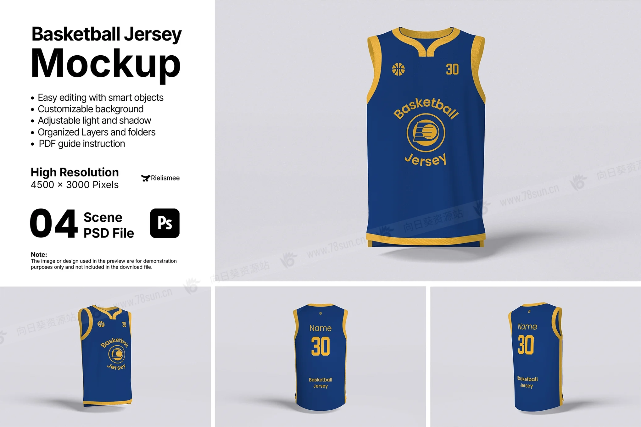 篮球球衣背心品牌VI效果图展示智能贴图psd设计样机,