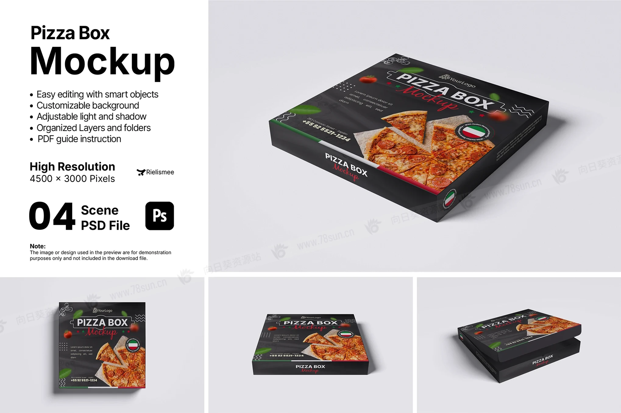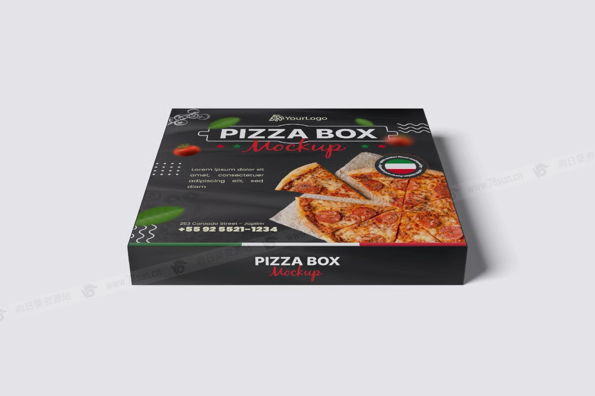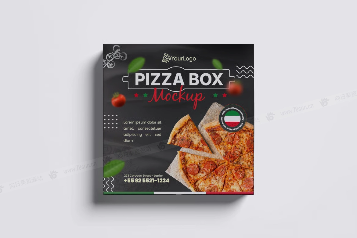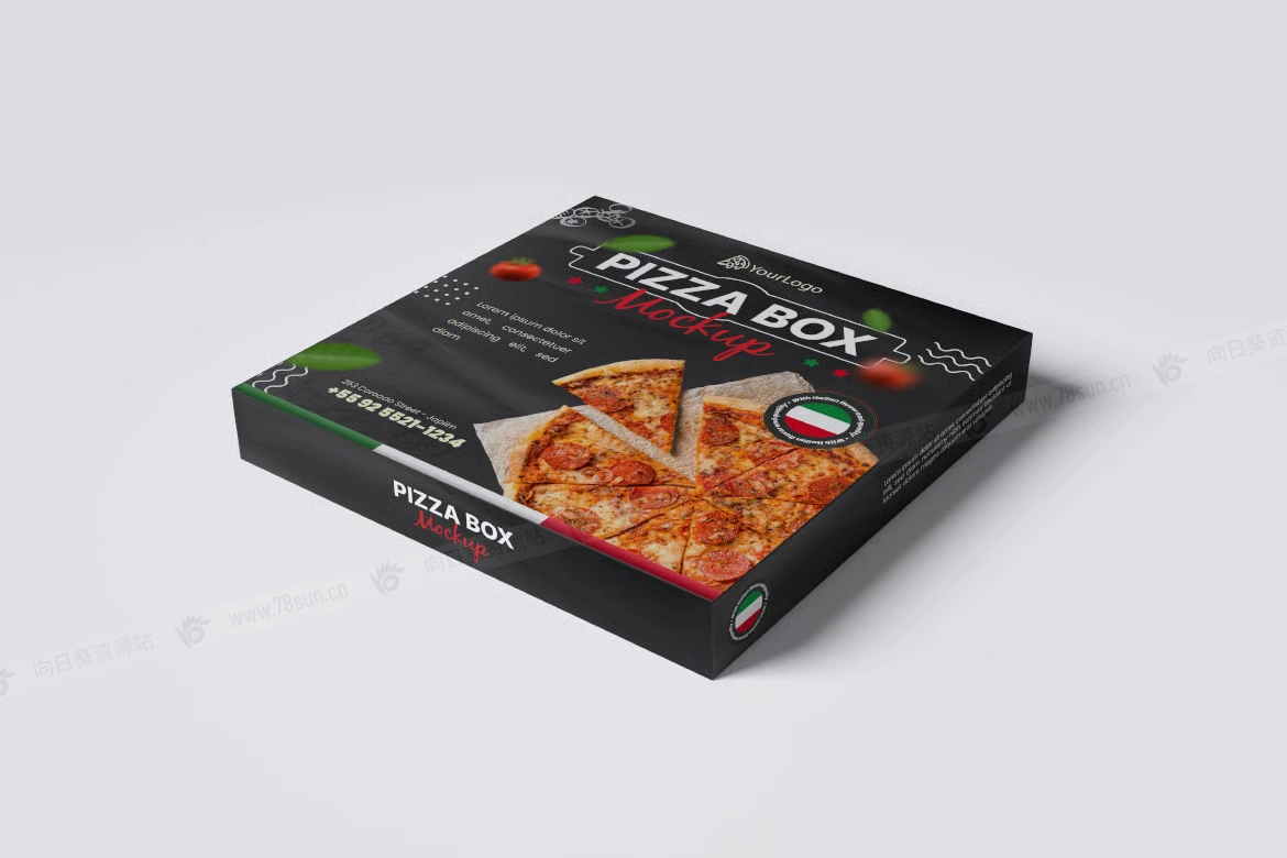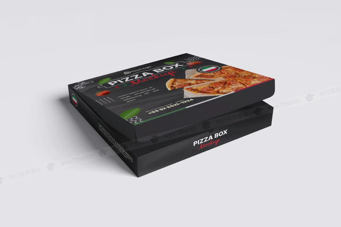 方形披萨盒品牌VI效果图展示智能贴图psd设计样机,