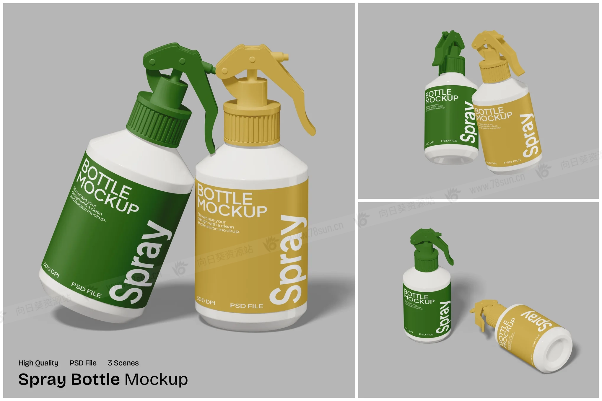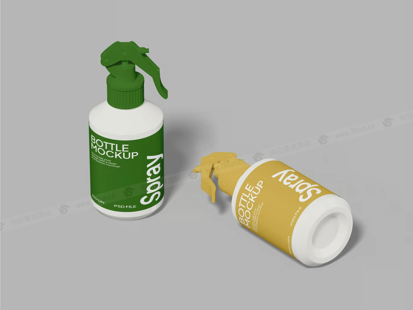 泵瓶喷雾清洁剂塑料瓶品牌VI效果图展示智能贴图psd设计样机,