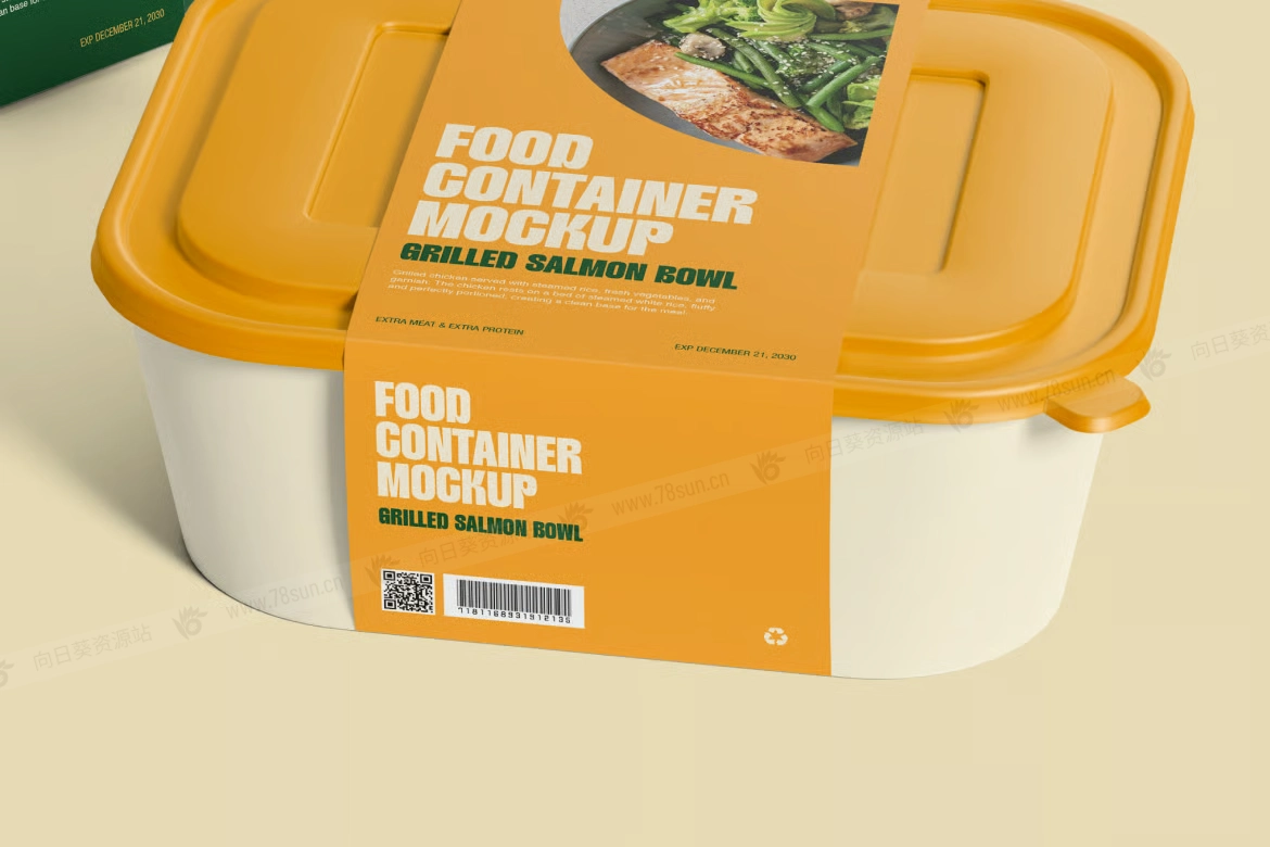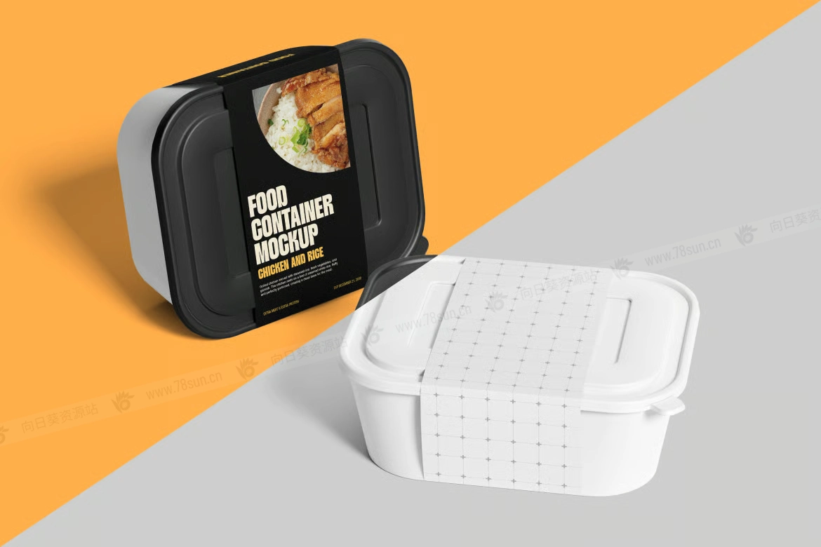 带标签外卖打包盒食品包装盒品牌VI效果图展示智能贴图psd设计样机,
