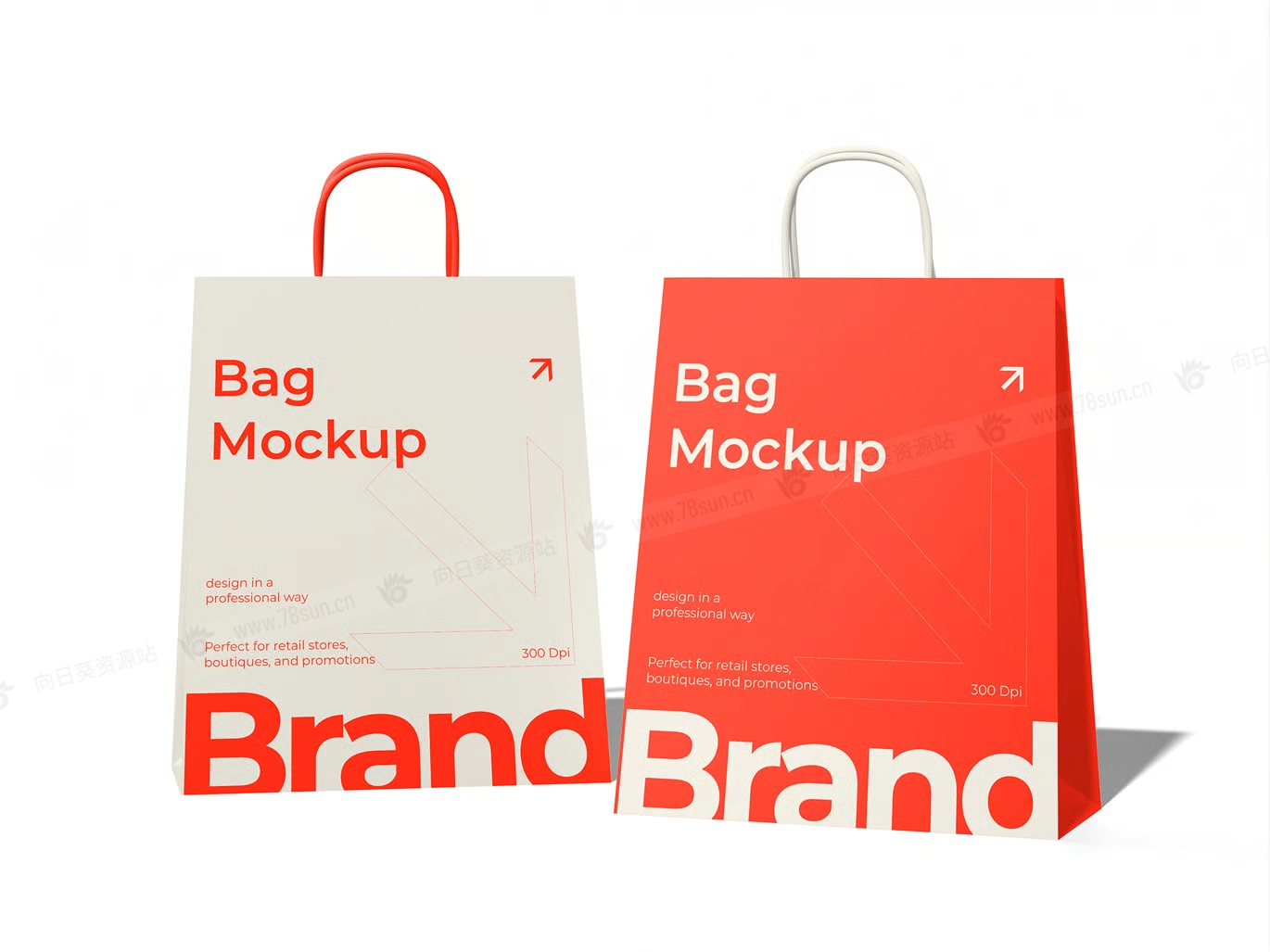 纸质手提袋购物袋品牌VI效果图展示智能贴图psd设计样机,