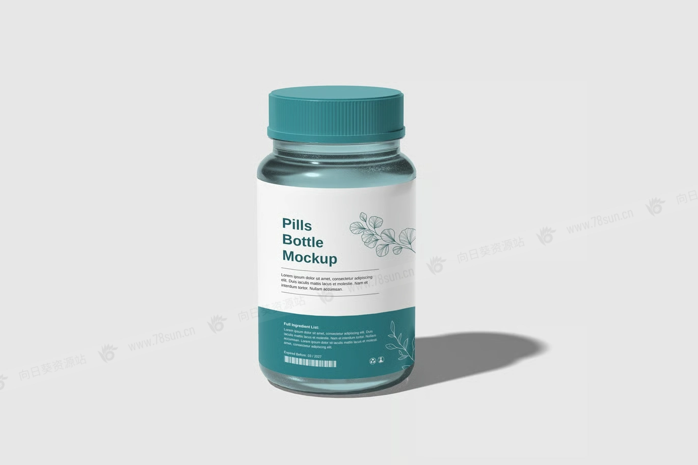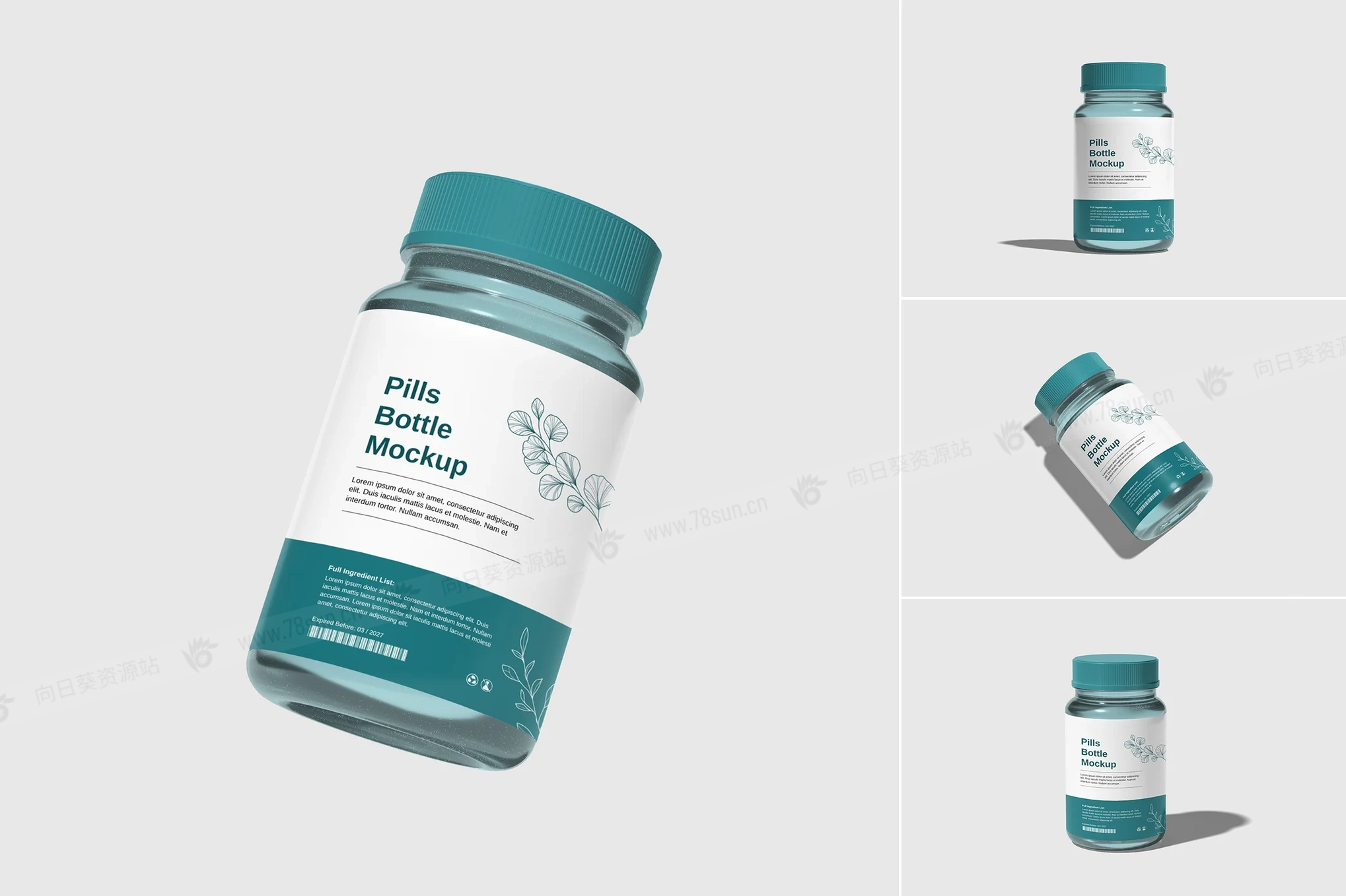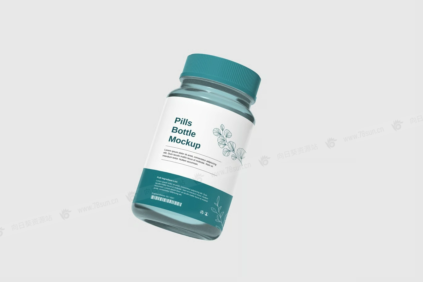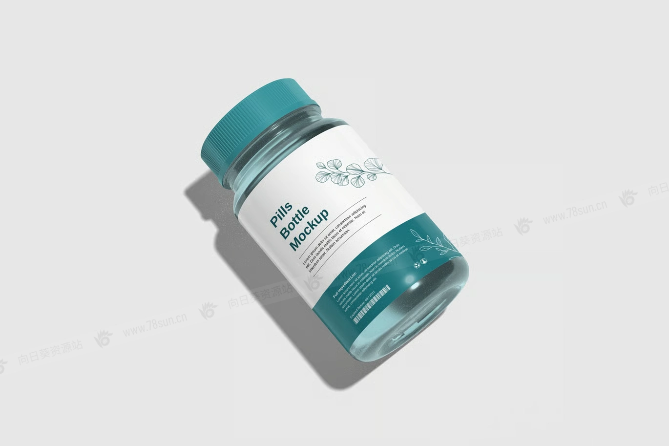 医疗药瓶塑料瓶品牌VI效果图展示智能贴图psd设计样机。此模型文件使用智能对象功能,可帮助您在几秒钟内更改设计(包括帮助文件)。