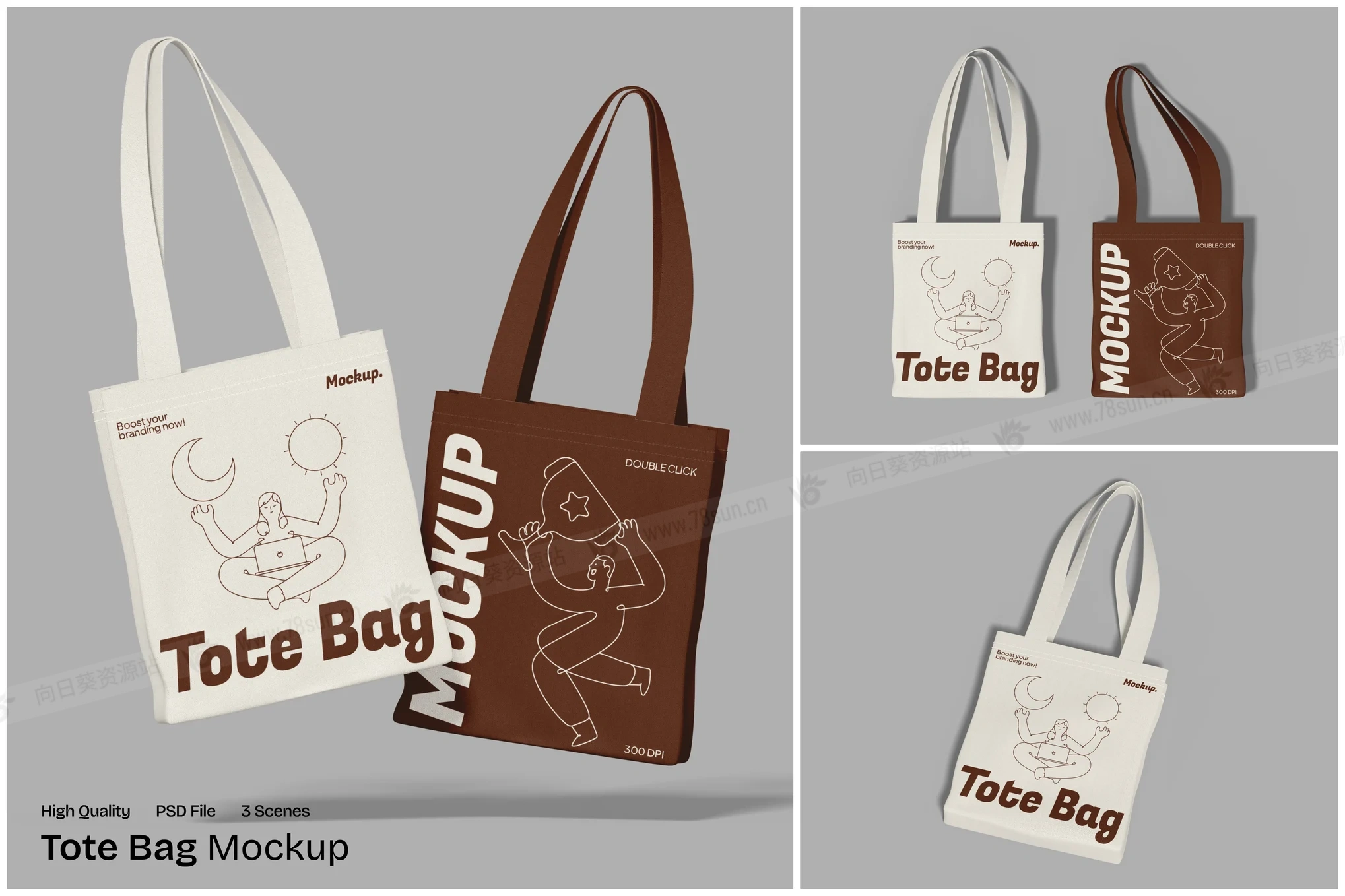托特包手提袋购物袋品牌VI效果图展示智能贴图psd设计样机,