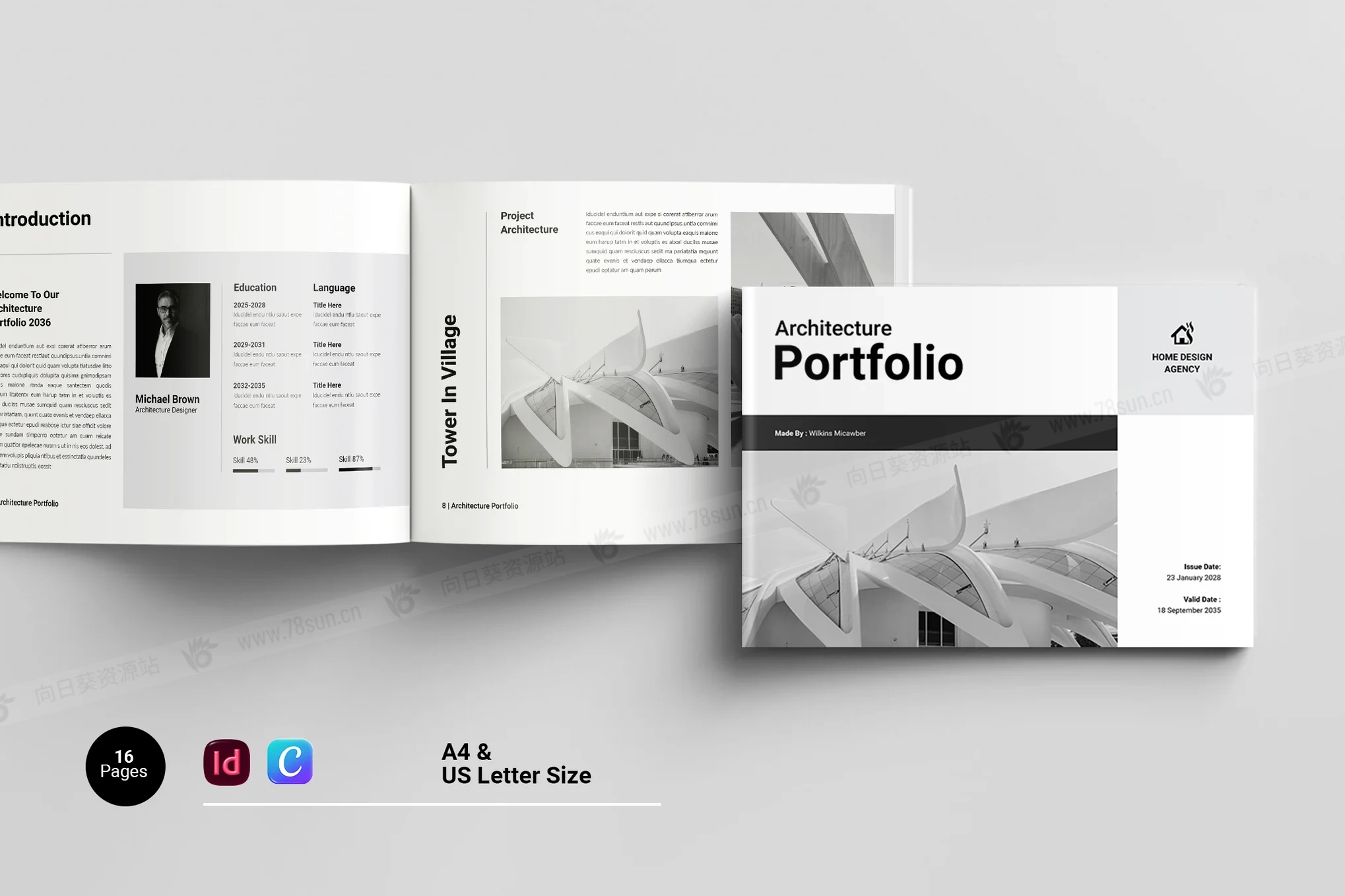 建筑房地产摄影作品集小册子杂志宣传册画册indd设计模板。这种布局适用于任何项目目的,非常易于使用和定制。自定义它并用您自己的徽标和品牌颜色替换徽标和品牌颜色很容易,
