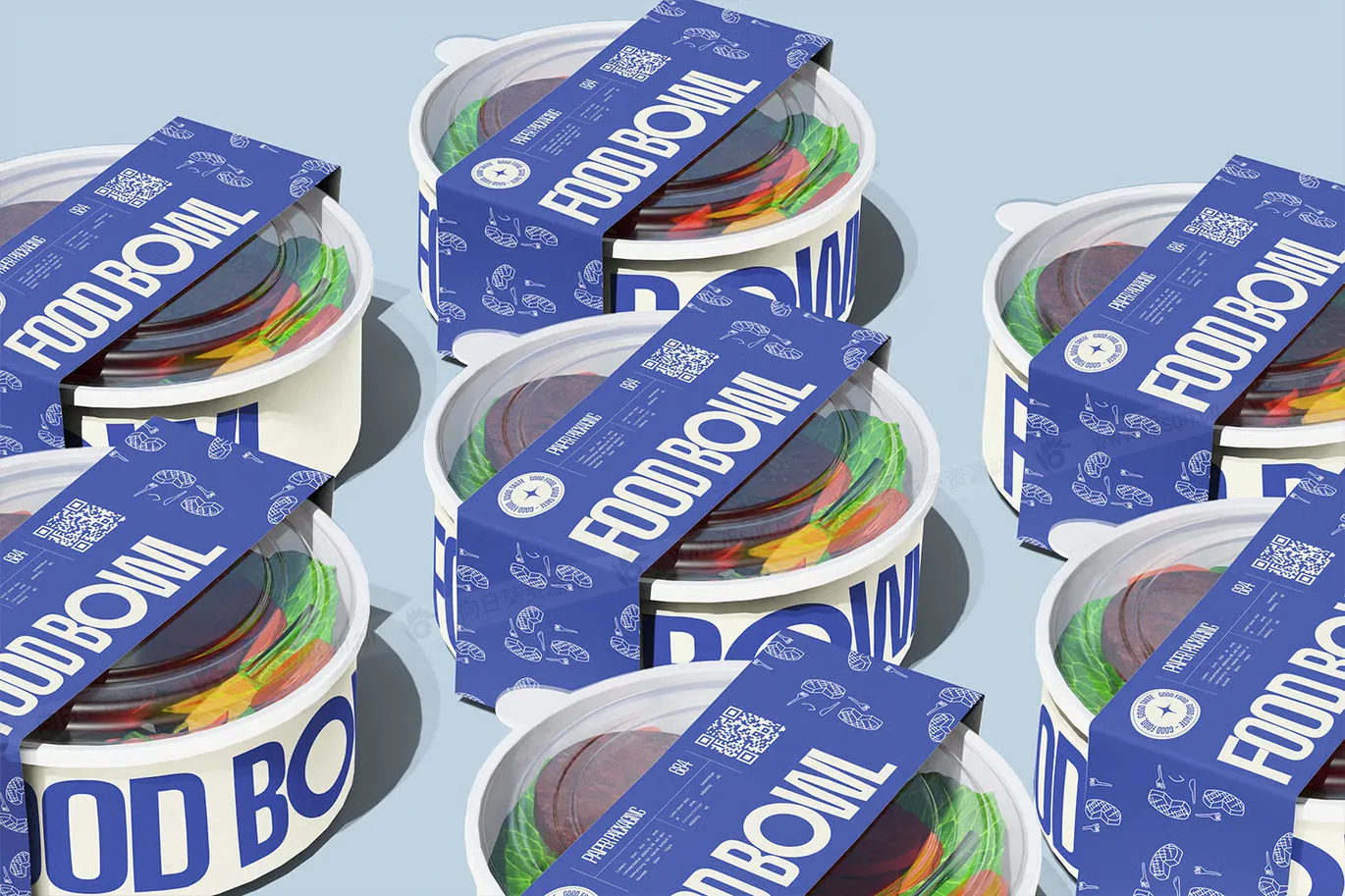 带标签外卖食品纸碗品牌VI效果图展示智能贴图psd设计样机。只需单击一下,您就可以使用此模型模板,它分层良好且随时可用。