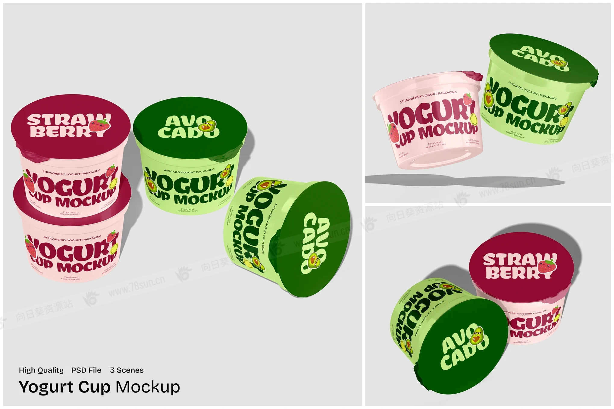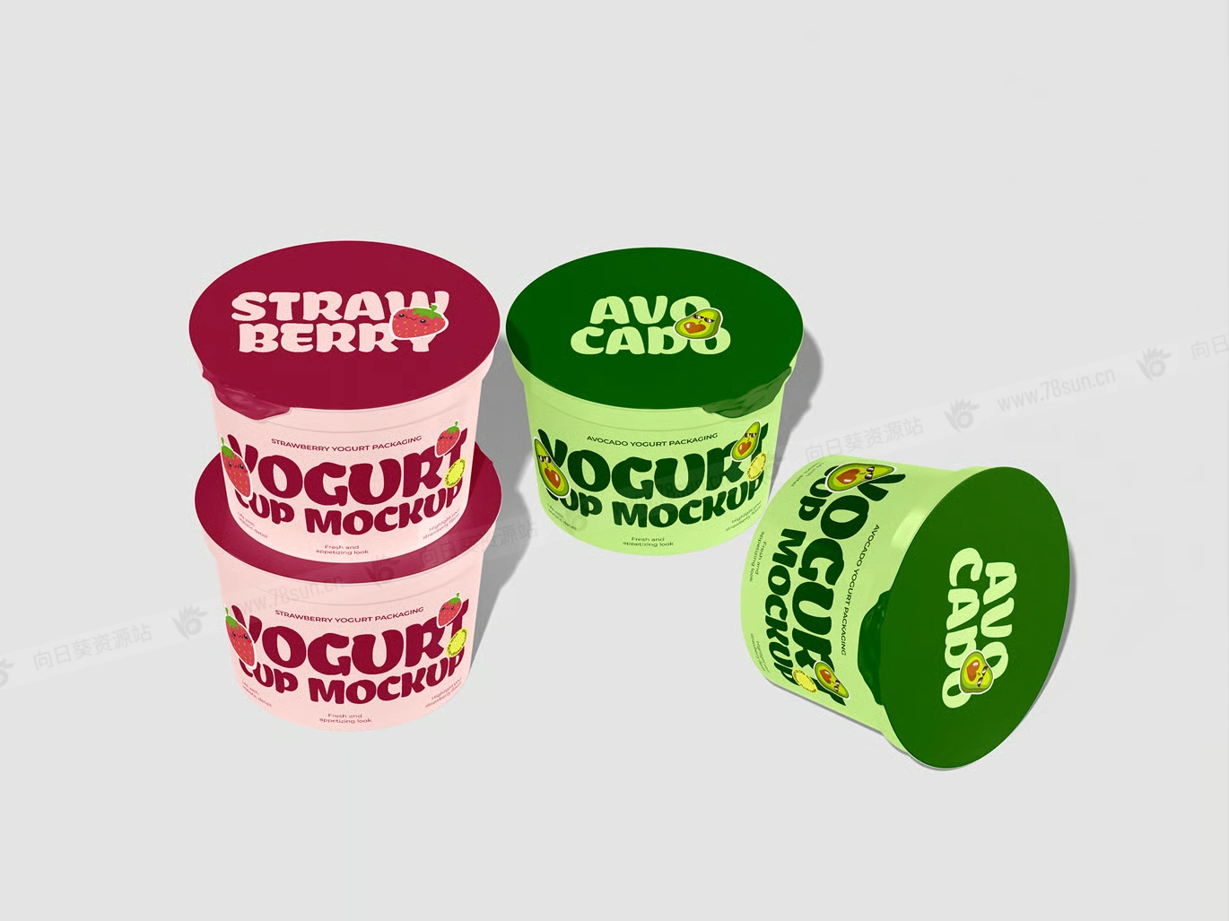 酸奶杯品牌VI效果图展示智能贴图psd设计样机,