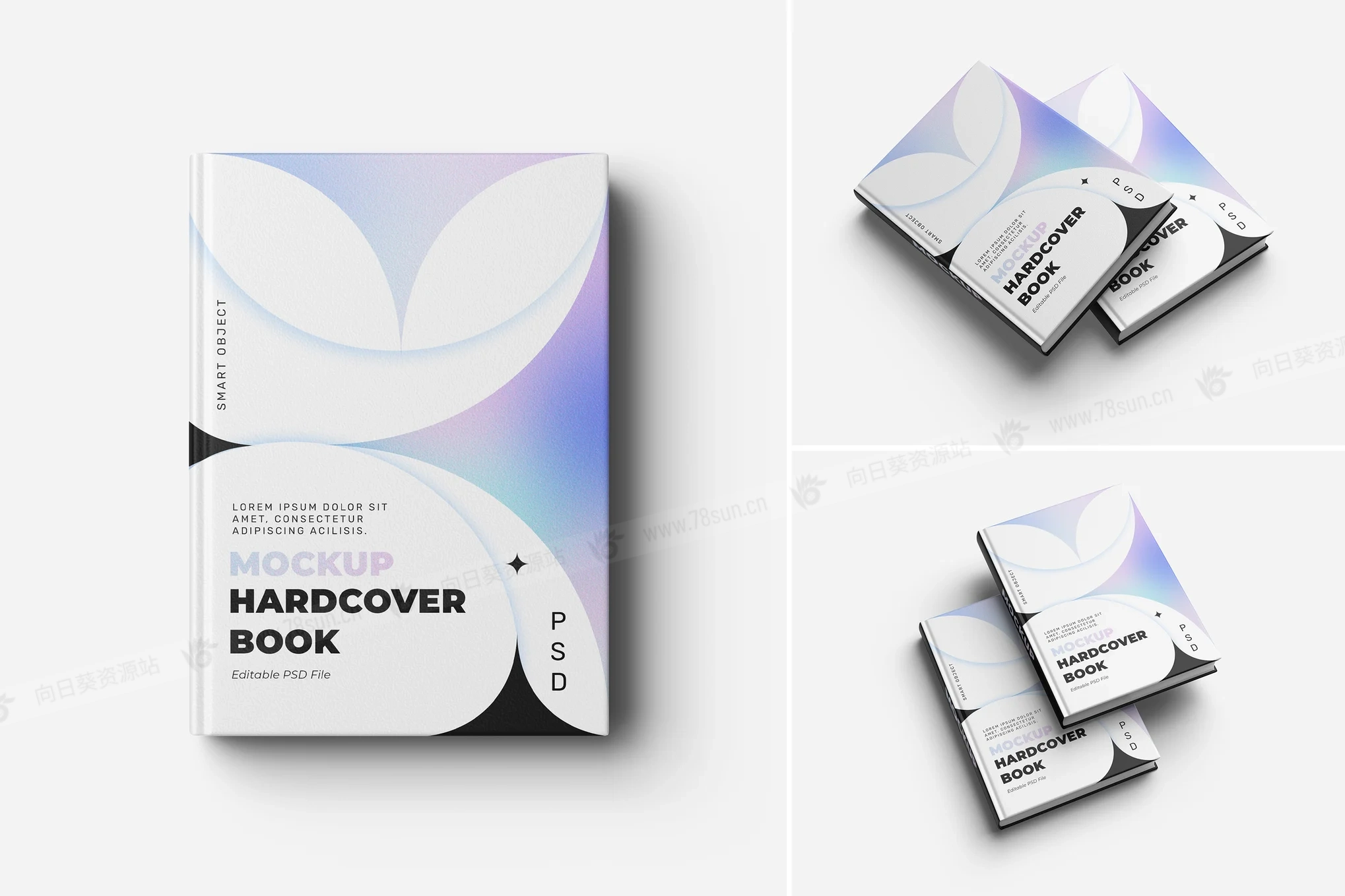 精装书籍封面品牌VI效果图展示智能贴图psd设计样机,该模型包括 03 个带有分层良好 PSD 文件,并且该模型还使用智能对象功能,这意味着您可以在几秒钟内轻松快速地使用自己的设计更改当前设计。