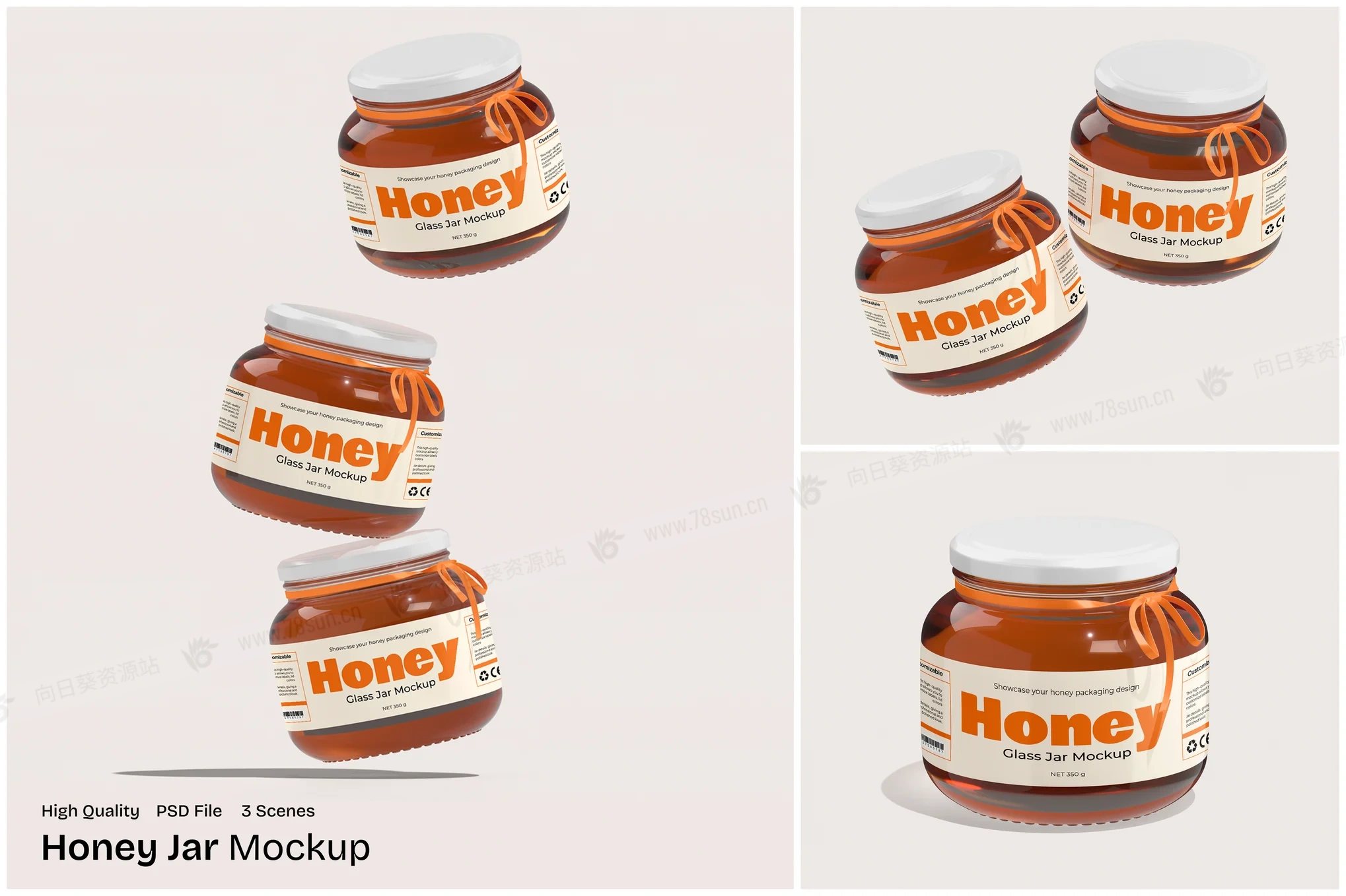 蜂蜜罐玻璃罐品牌VI效果图展示智能贴图psd设计样机,